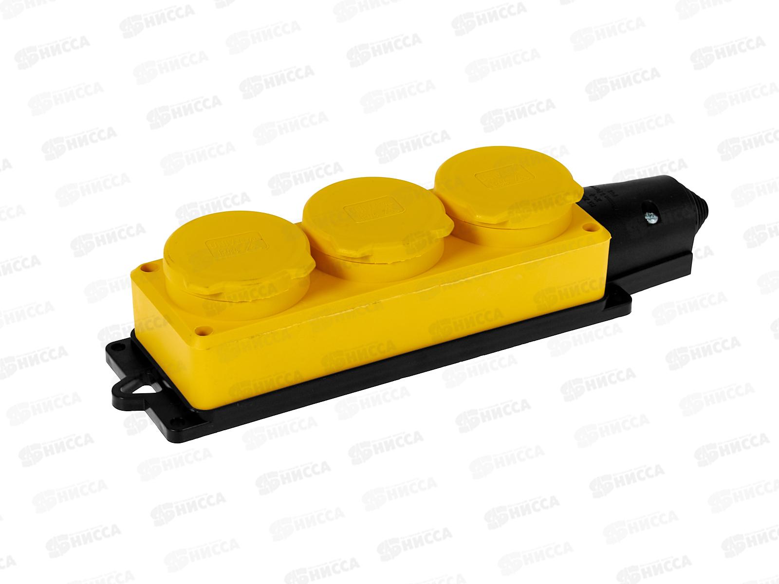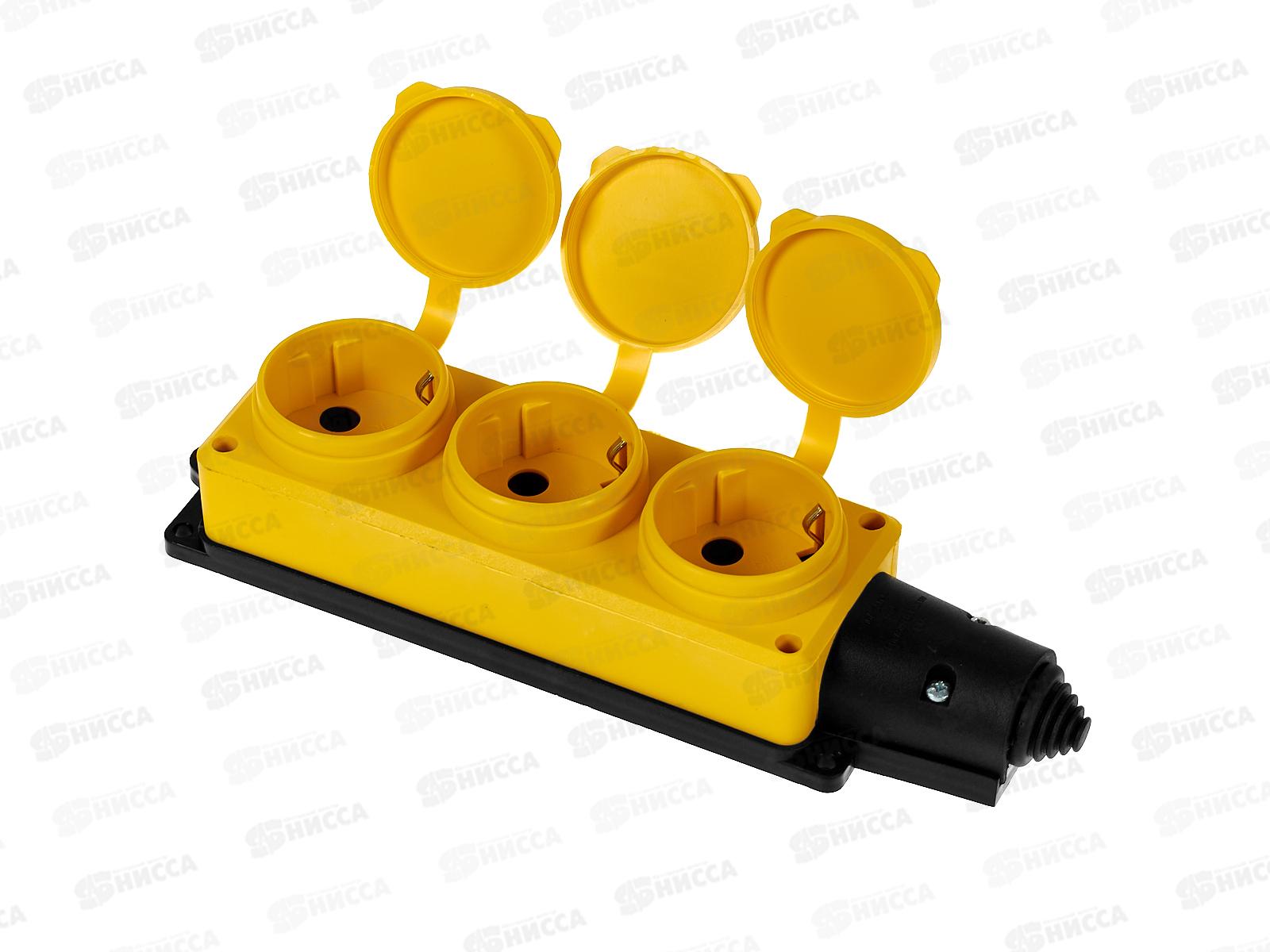 Колодка UNIVersal с заземлением 3 гнезда каучук, одноф. с заглуш., желтая, 3083