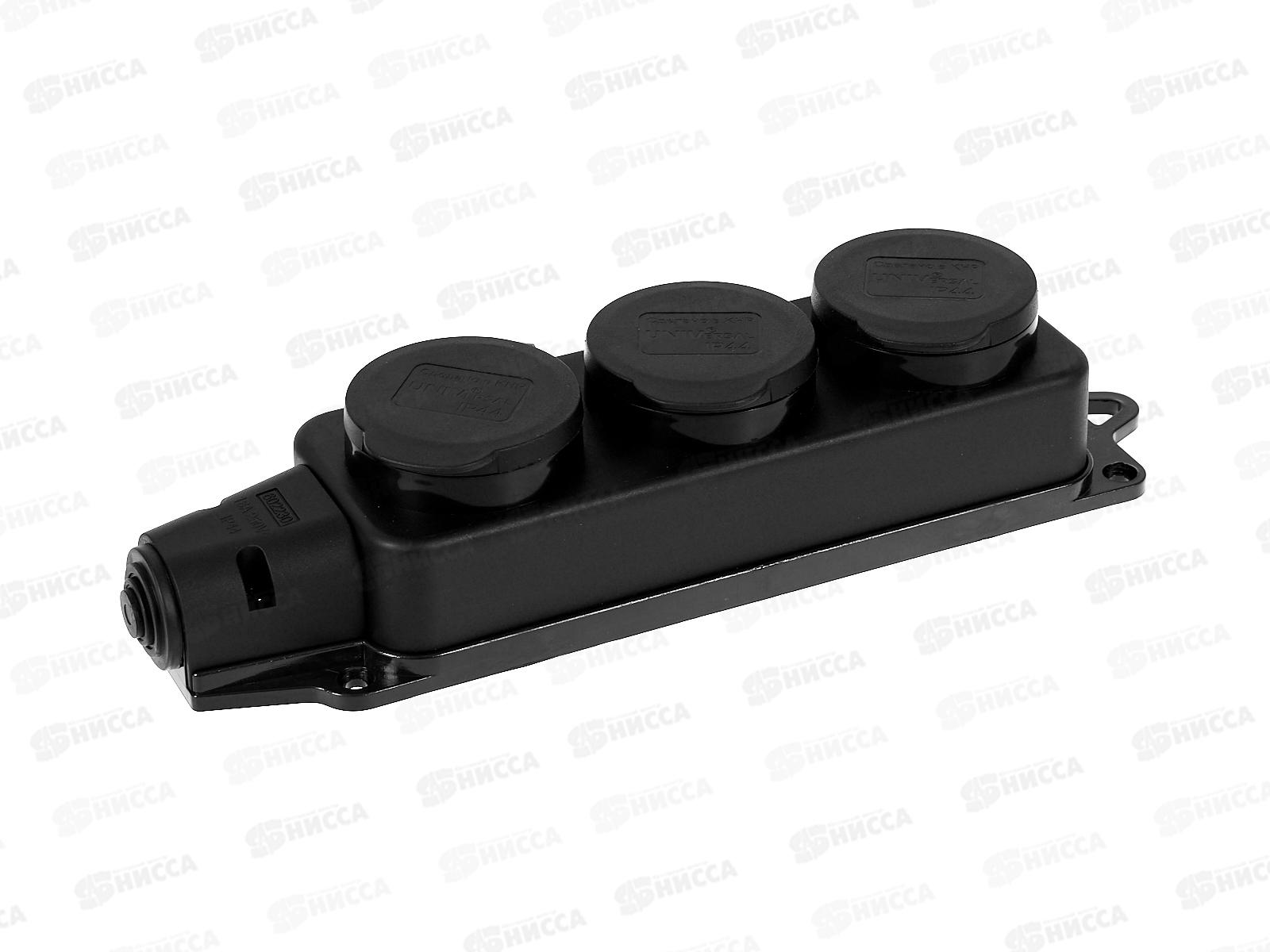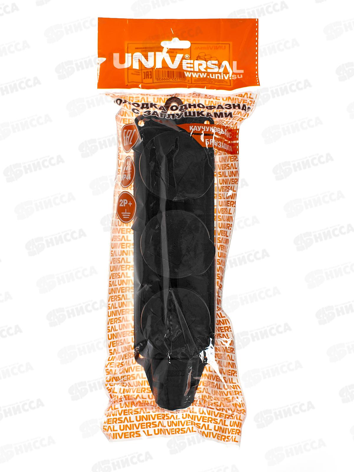 Колодка UNIVersal с заземлением 3 гнезда каучук, одноф. с заглуш., 602230