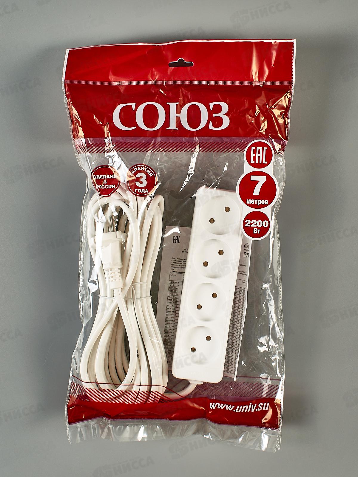 Удлинитель бытово СОЮЗ 2200ВТ 4гн. ПВС , без заземления 7м, 481S-1407