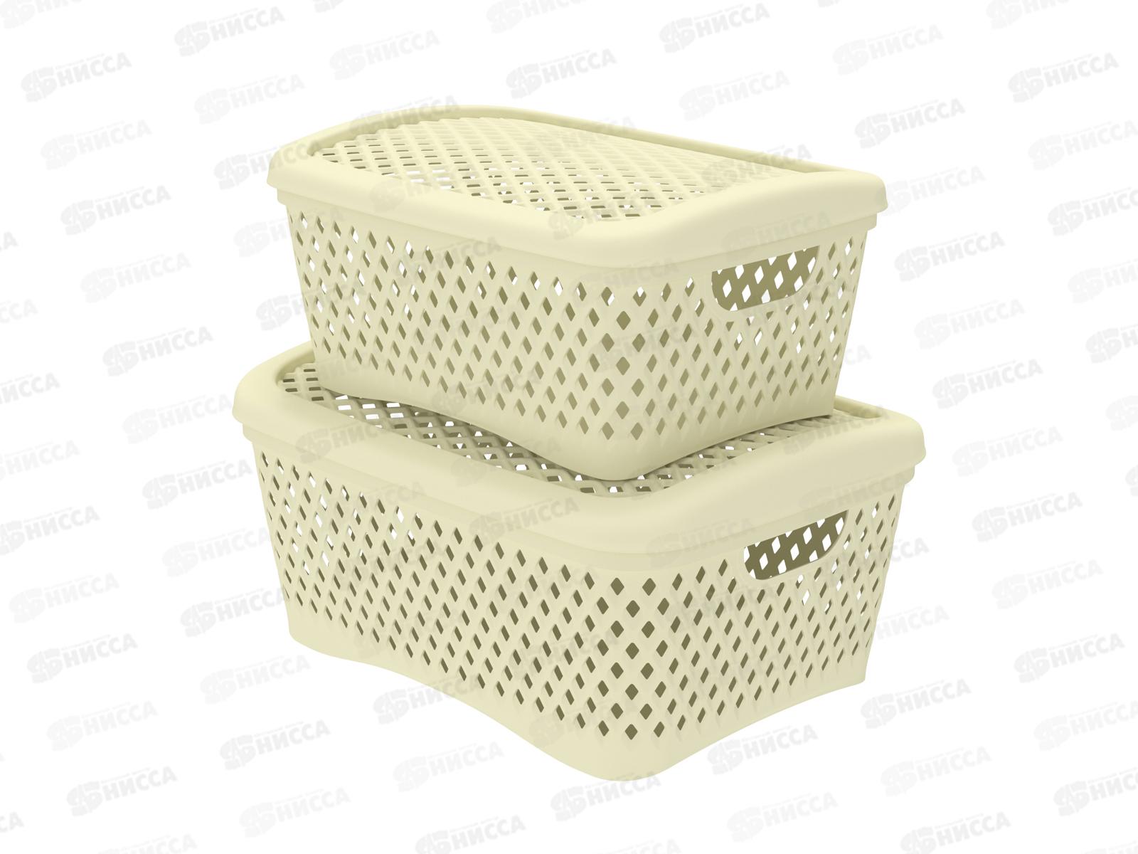 Набор корзинок с крышками "Ромбики" (M+S, 2шт) ваниль, АП 416
