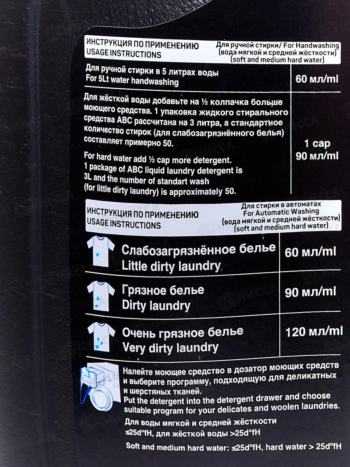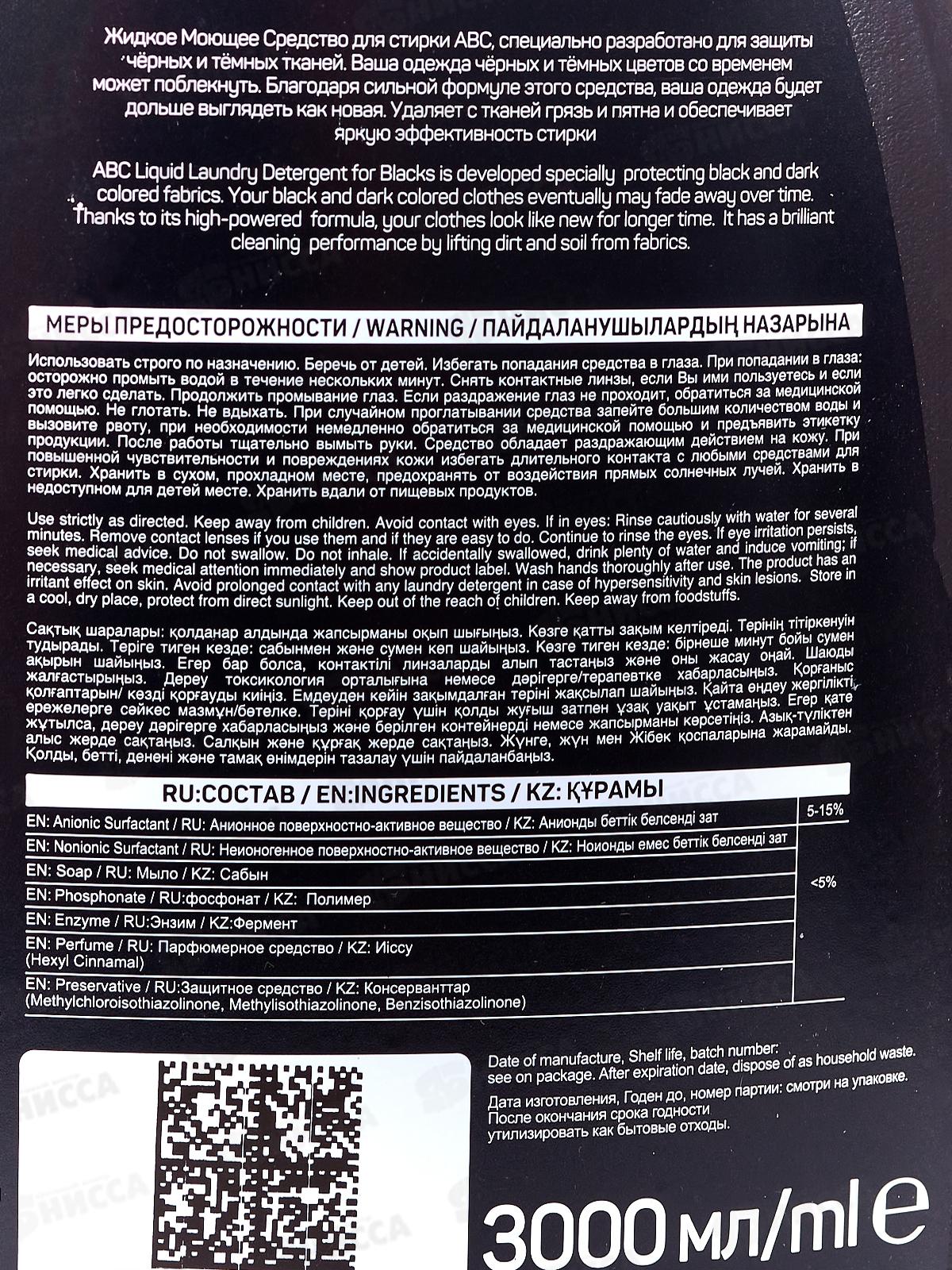 Состав: анионные ПАВ 5-15%, неиногенные ПАВ 5%, мыло 5%, фосфонаты 5%, энзимы 5%, ароматизатор, консерванты (метилхлороизотиазолинон, метилизотиазолинон, бензизотиазолинон) 5%.