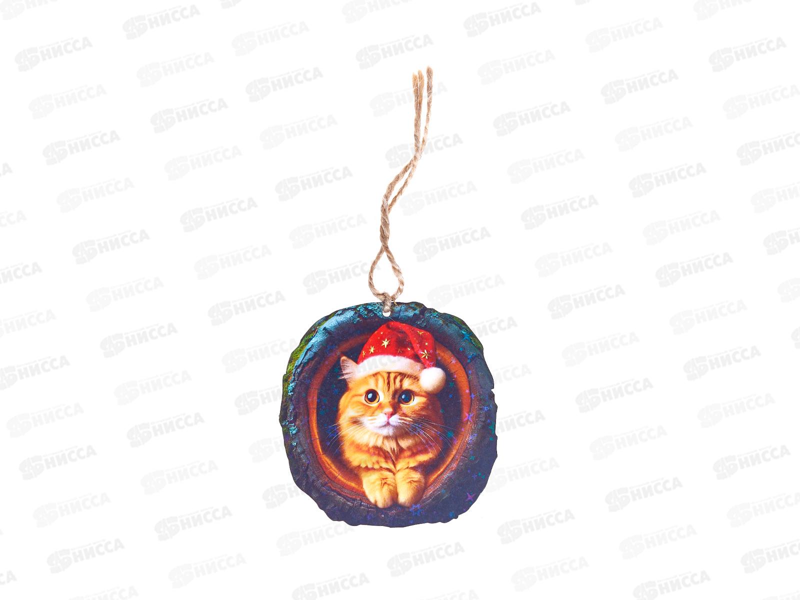 Подвеска на елку дерево нг-ПЦД-013 Рыжий кот в дупле двусторонняя