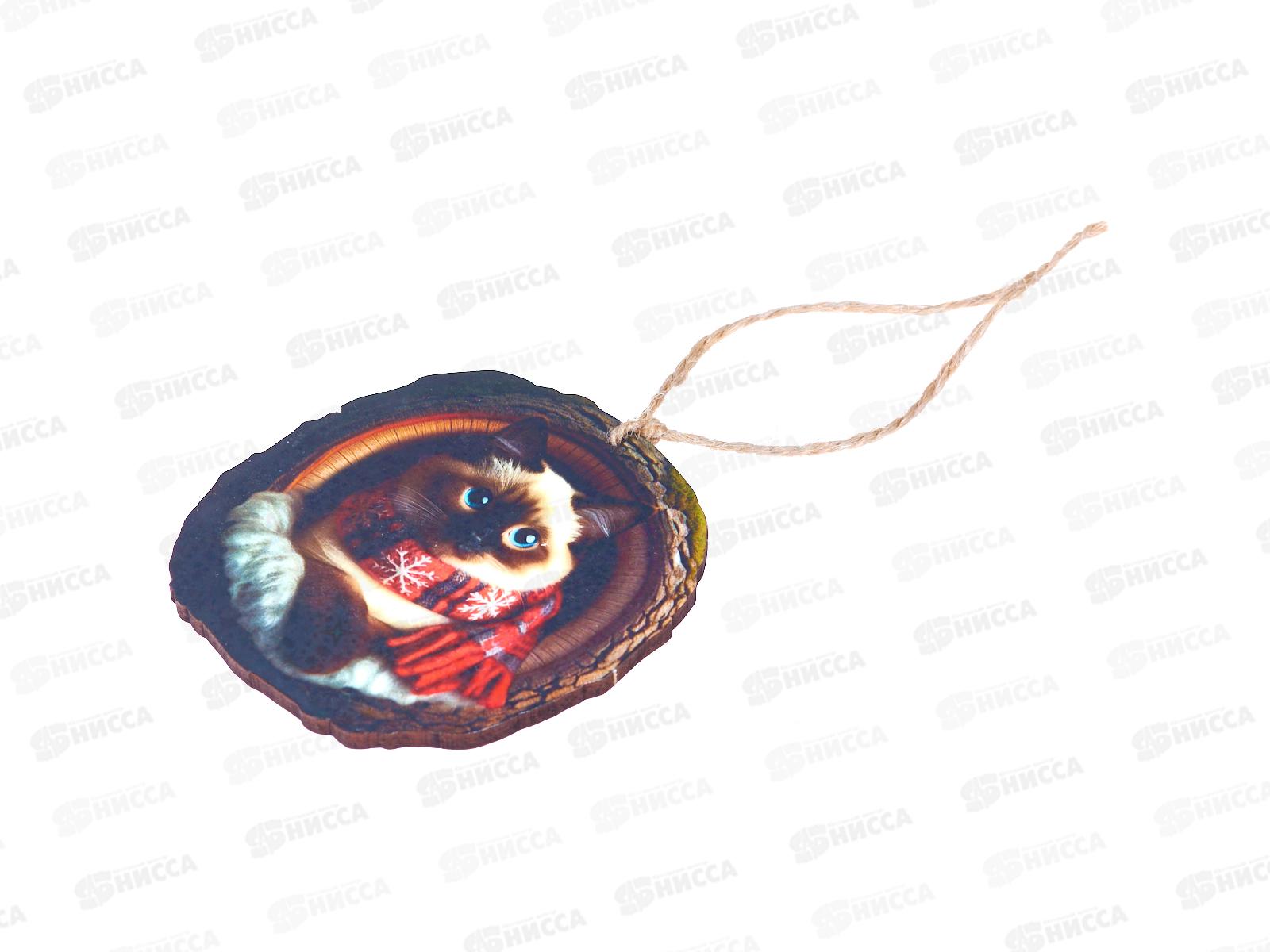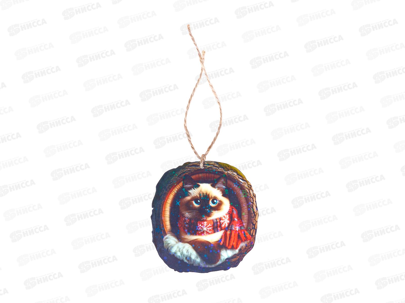 Подвеска на елку дерево нг-ПЦД-014 Тайский кот в дупле двусторонняя