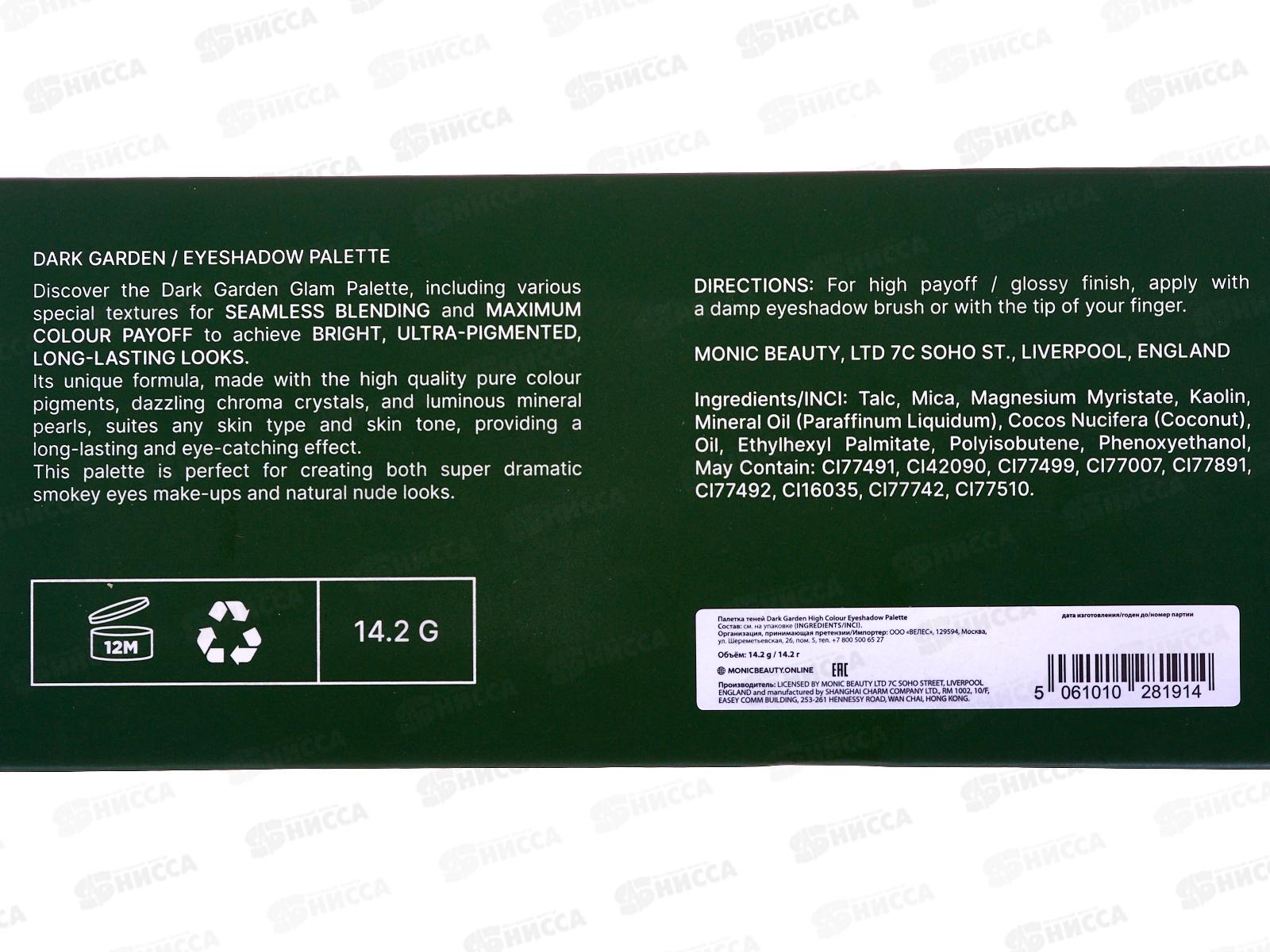 Monic Beauty Тени полетка Dark Garden High Colour