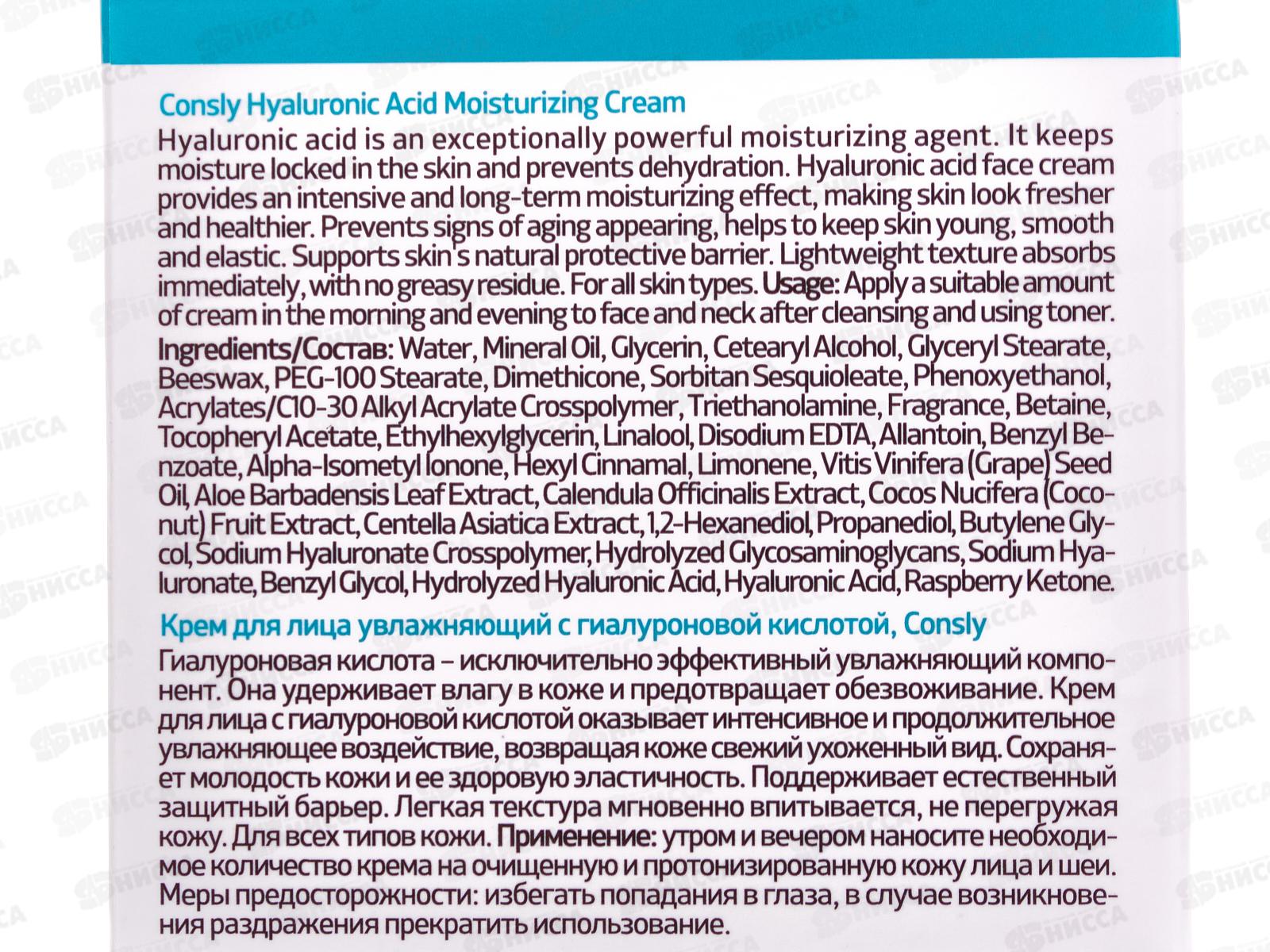 Consly Крем для лица увлажняющмй с гиалуроновой кислотой 70мл