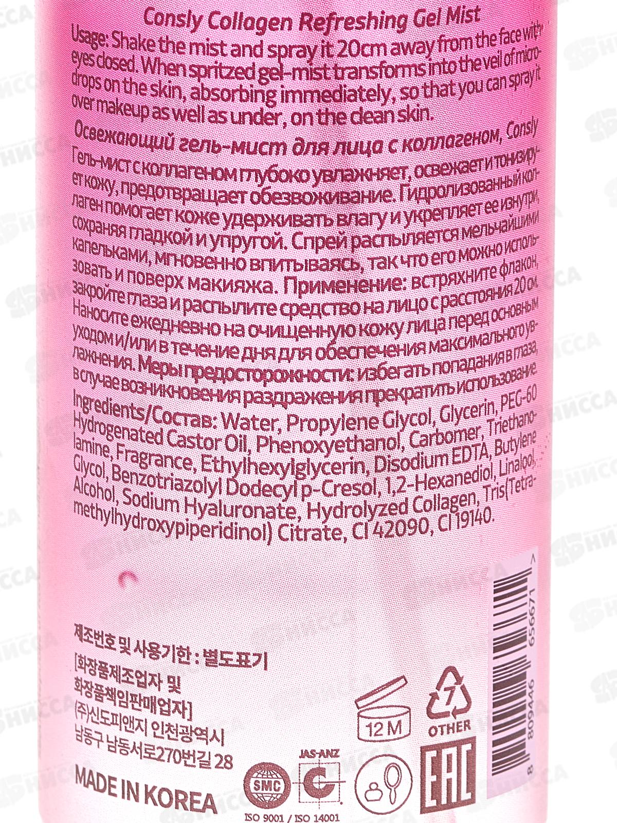 Consly Гель-мист Освежающий для лица с коллагеном 120мл