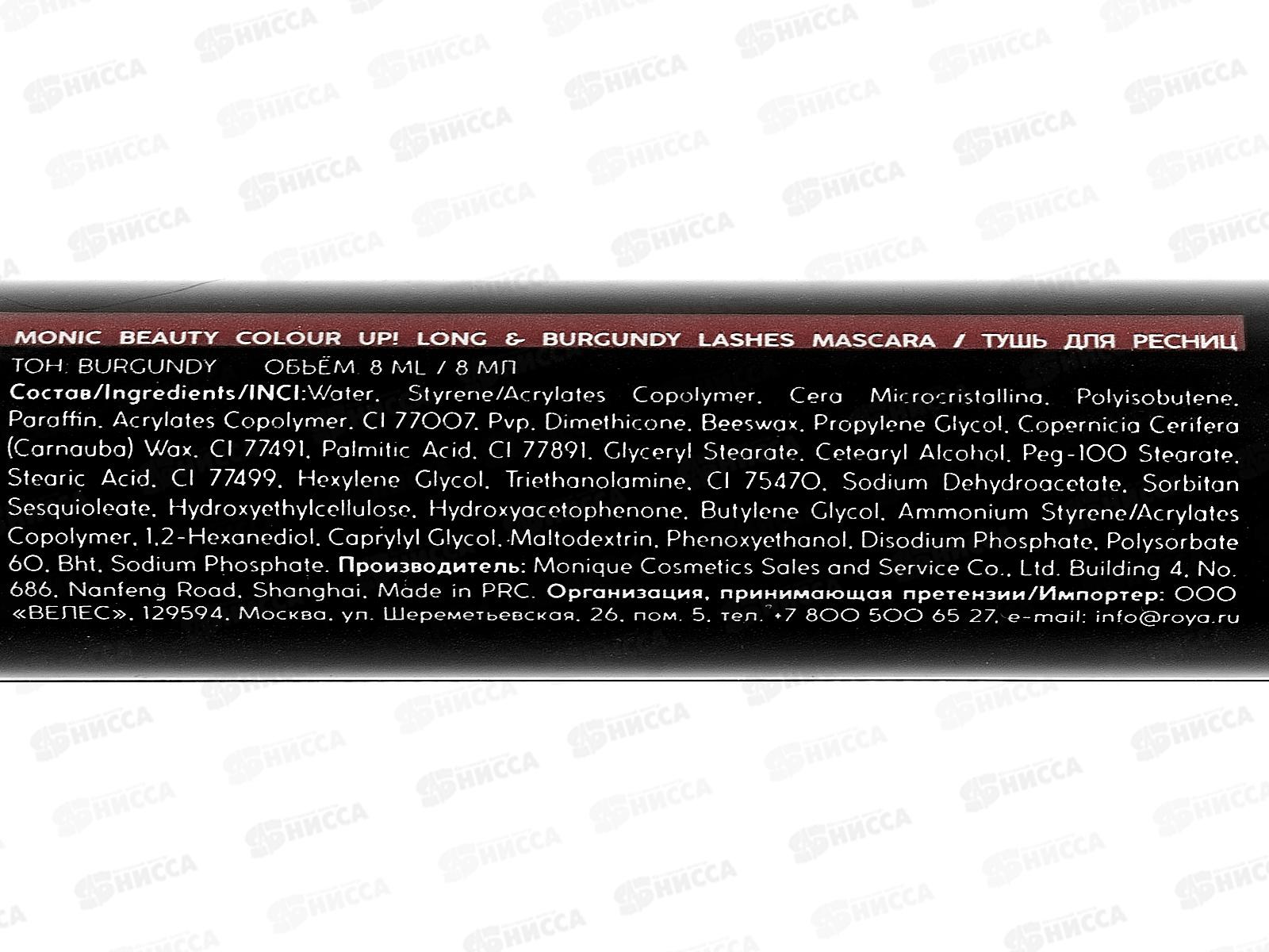 Monic Beauty Тушь для ресниц Lash Upl Long&Burgundy Mascara *3