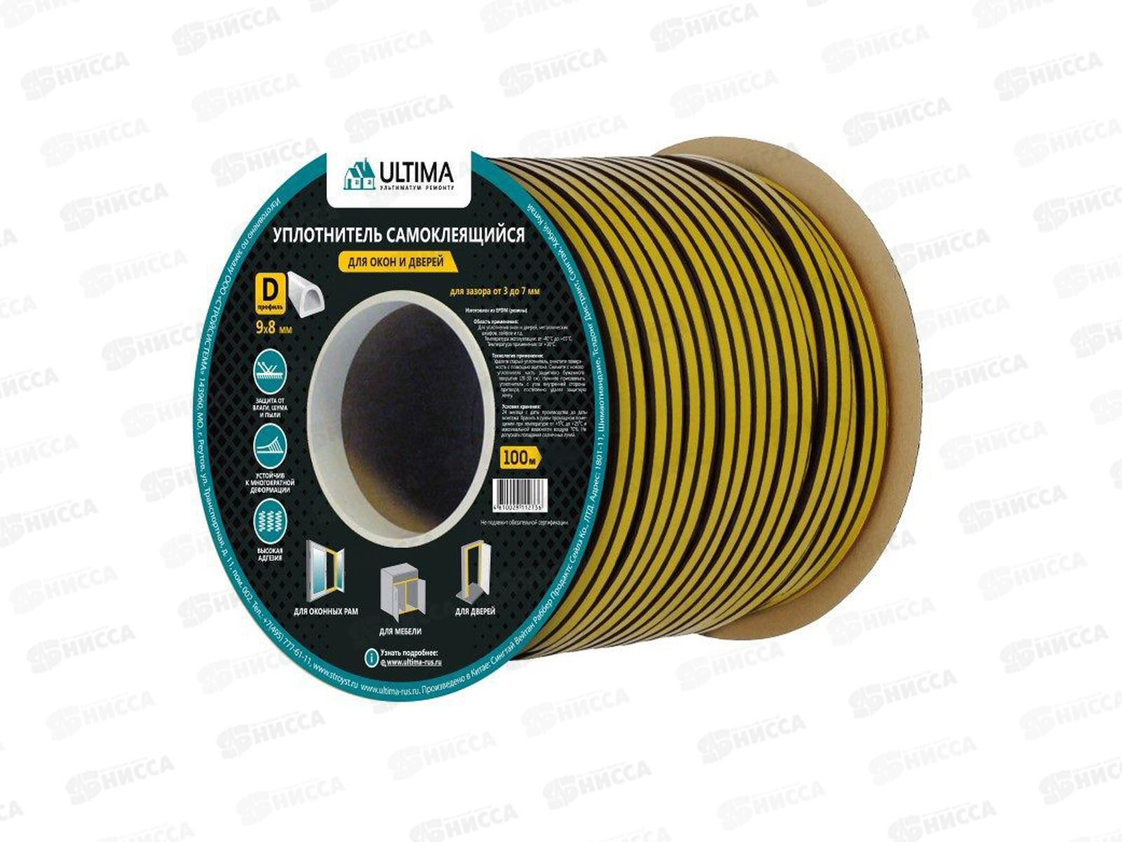 Код:597866; Уплотнитель самоклеящийся ULTIMA 9*8мм D-100м (чёрный) *6/30