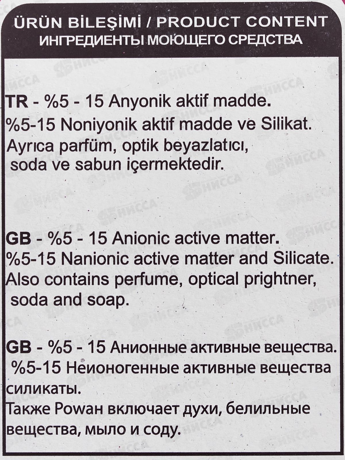 Состав: 5-15% анионные ПАВ, 5-5% неионогенные ПАВ, силикаты, отдушка, белильные вещества, мыло, сода.