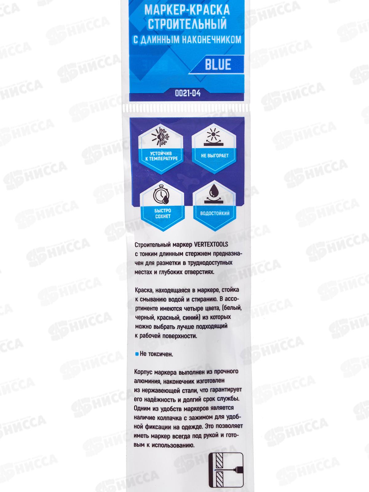 Маркер краска строительный с длинным наконечником синий Vertextools *20