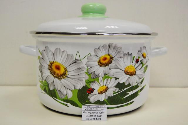 Кастрюля 4,0л эмалированная с рисунком 01-Б1614/4 Ромашковое поле *4