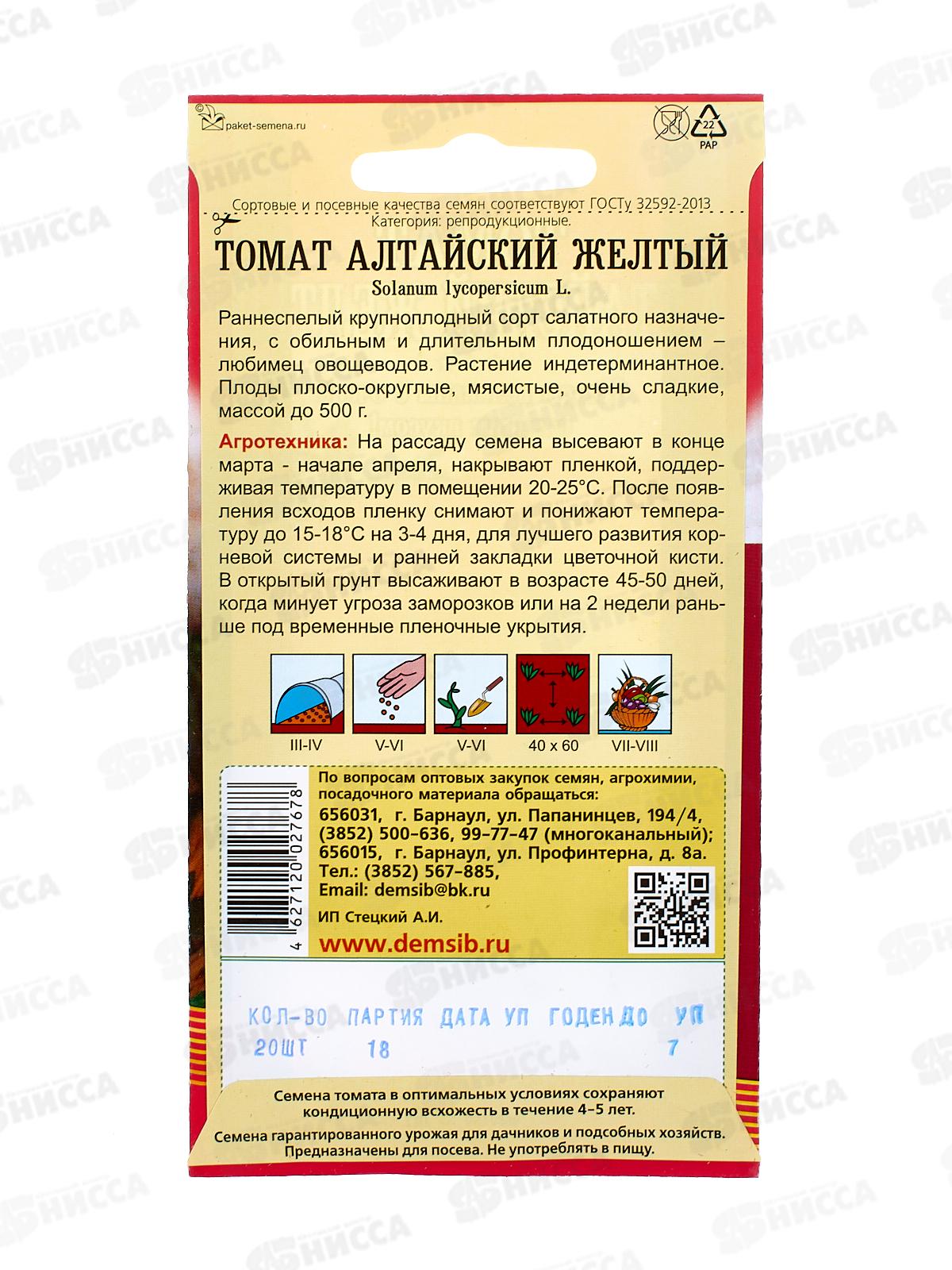 Томат Алтайский желтый (20шт) ДемСиб*20 +
