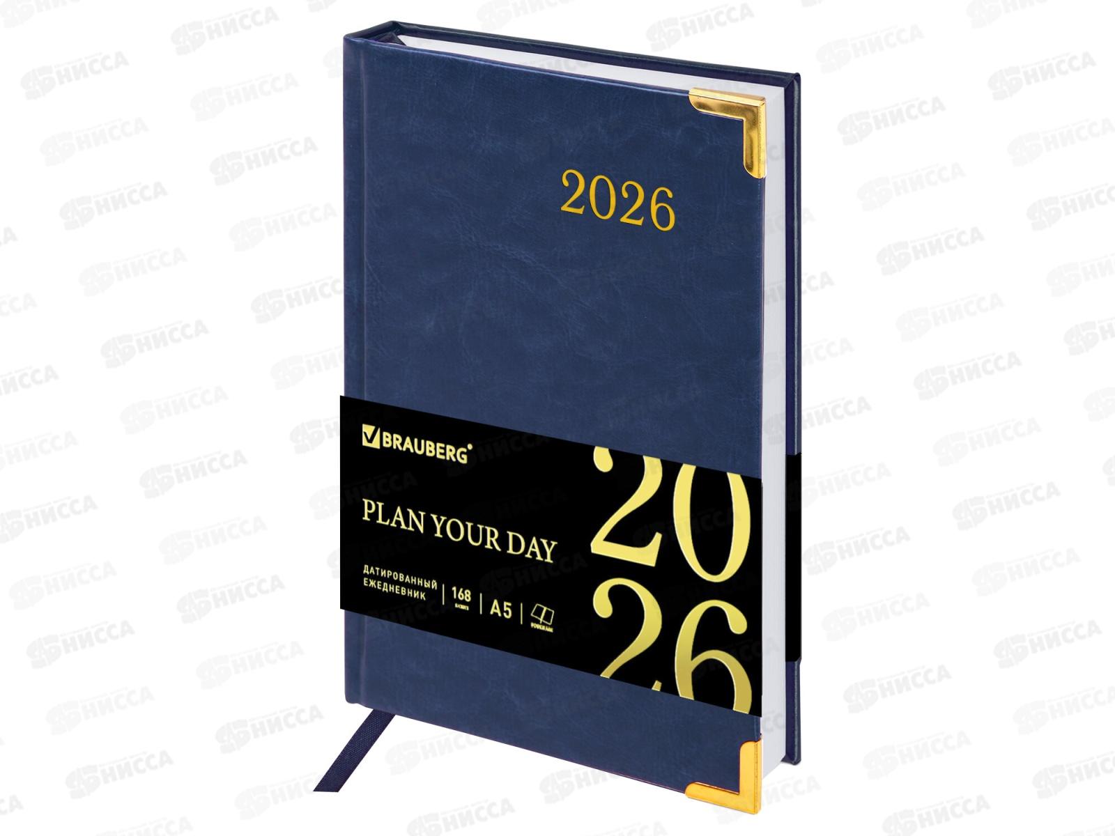 Ежедневник BRAU 2026 А5,Senator п/кожу, синий, 117091 *10