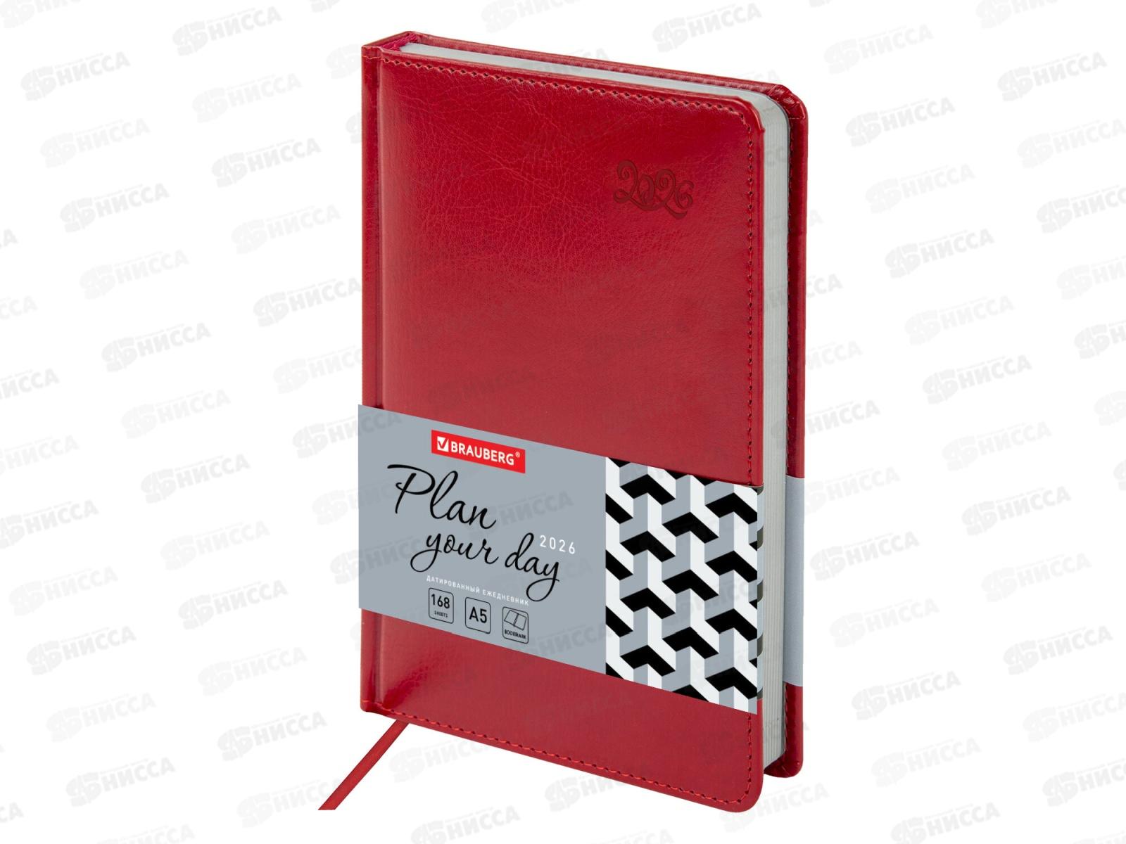 Ежедневник BRAU 2026 А5,Rainbow, под кожу, красный 117077