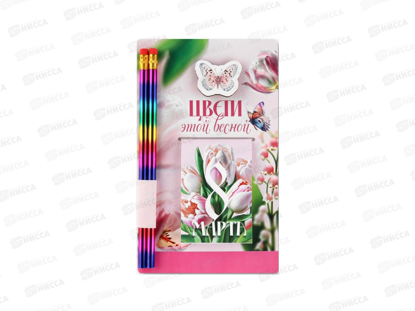 Набор блокнот ,карандаши 2шт и значок "8 Марта" 10027081