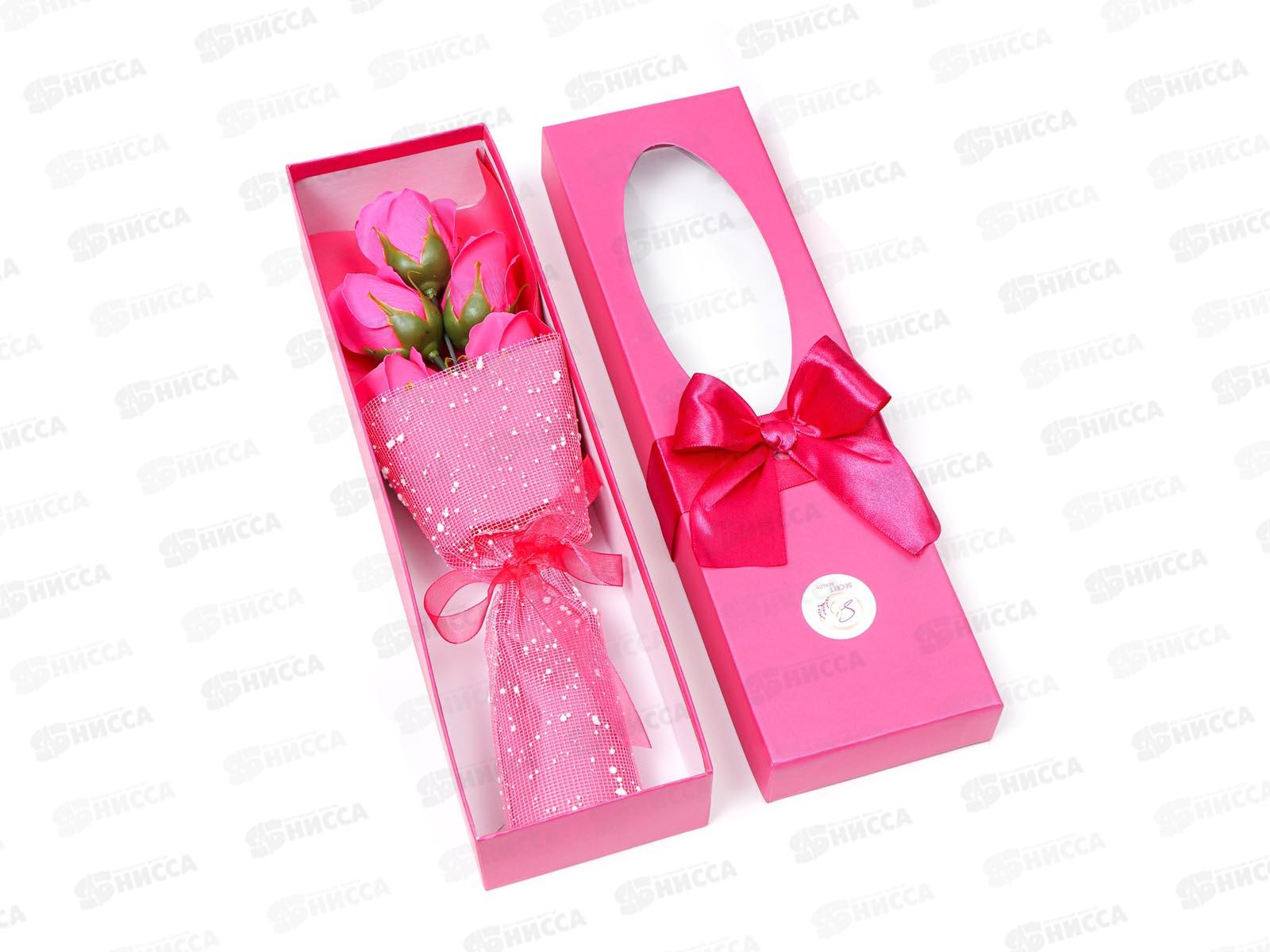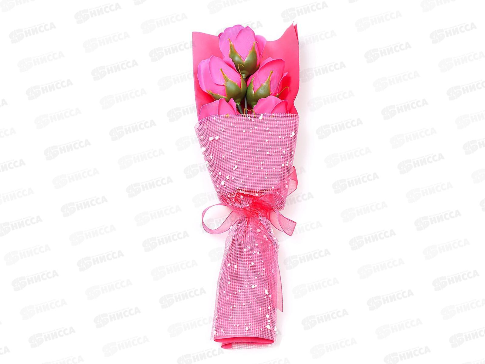 Букет мыльный из 5 роз фуксия, в коробке 6962348