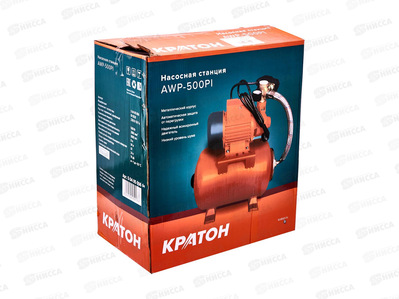 Насосная станция 500Вт, 8м/32м, 24л, Максимальная производительнсть: 3000л/ч, Кратон AWP-500PI *2