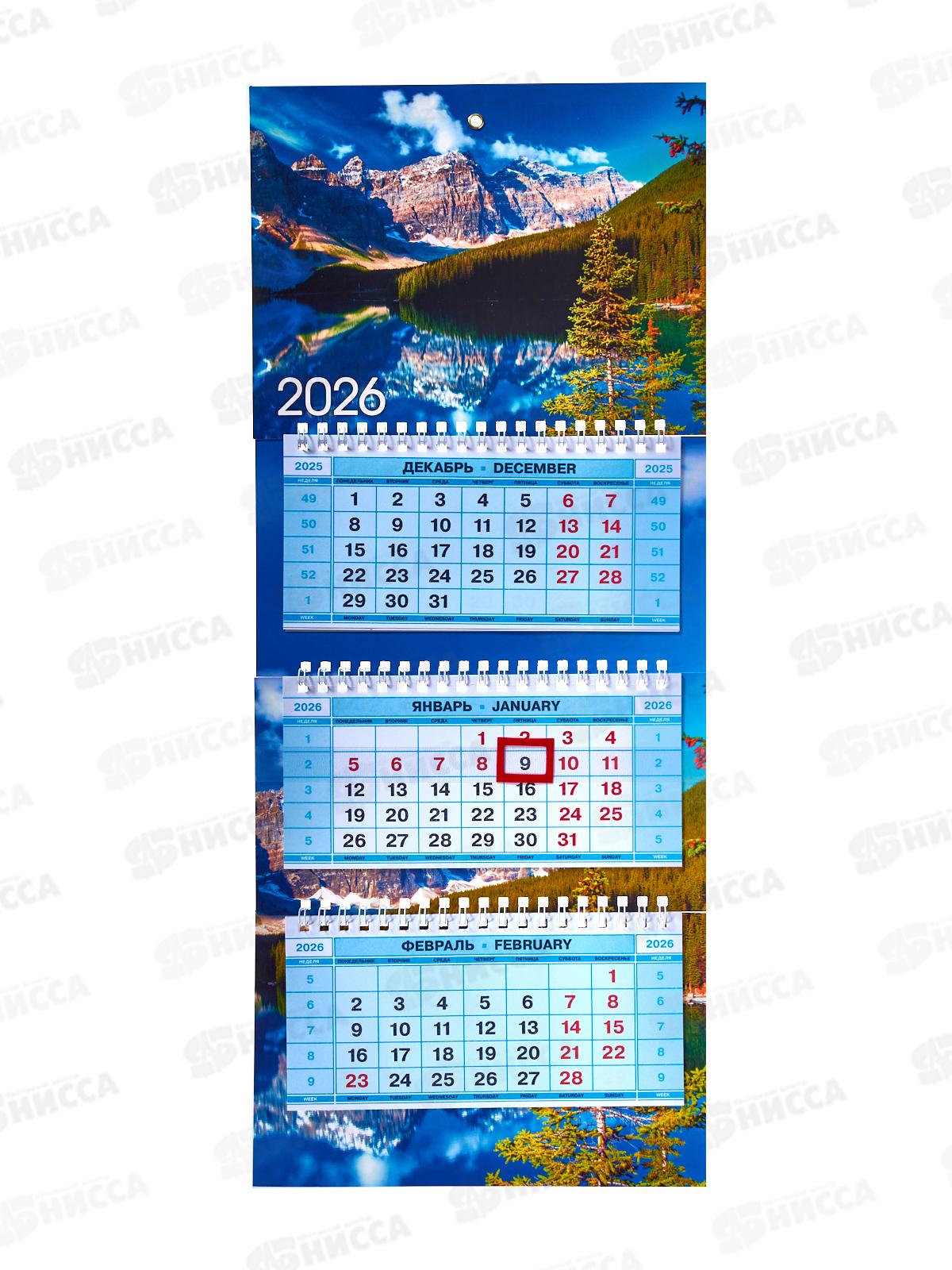 Календарь квартальный 2026 ХАТ 3 бл. Озеро в горах, 34332 (195х470)