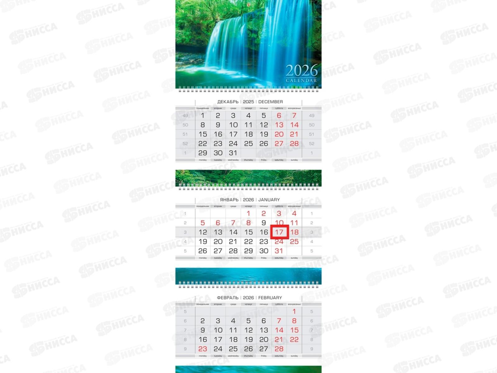 Календарь квартальный 2026 ХАТ 3 бл. Красота водопада, 34313 (297х758) *15