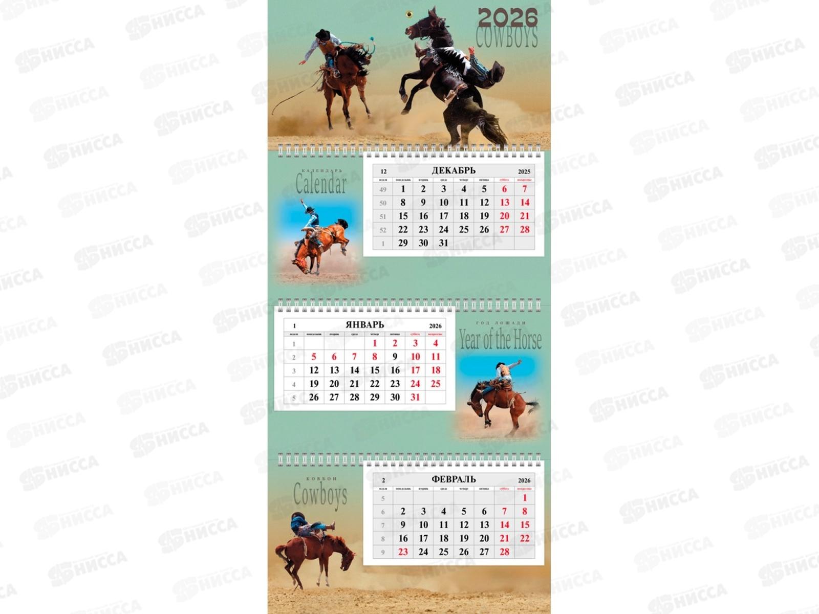 Календарь квартальный 2026 ХАТ 3 бл. Символ года Ковбои,11965 (297х655) *25