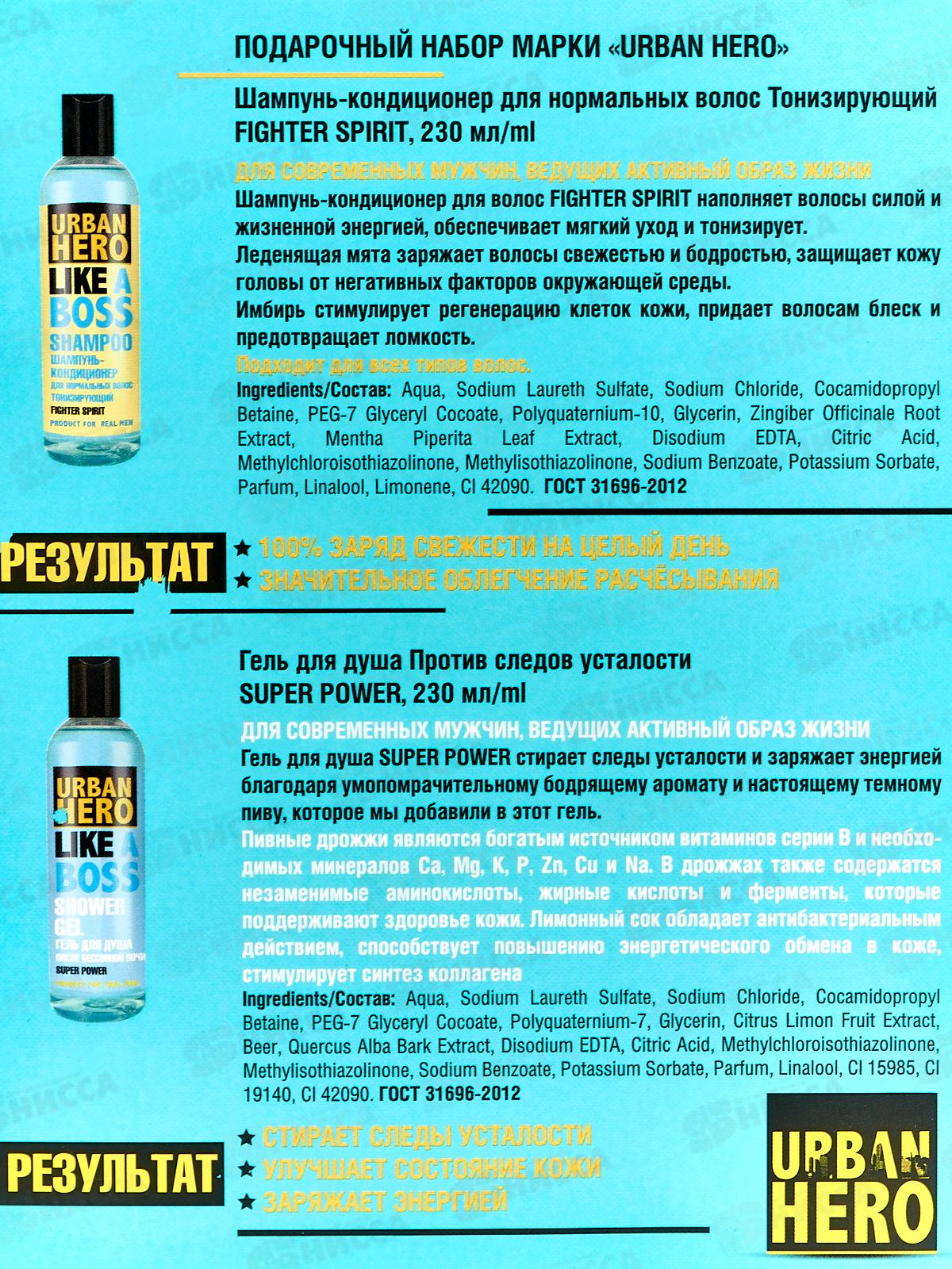 Urban Hero Подарочный набор Like Boss (шампунь-конди 230мл+гель для душа 230мл)до 10.25