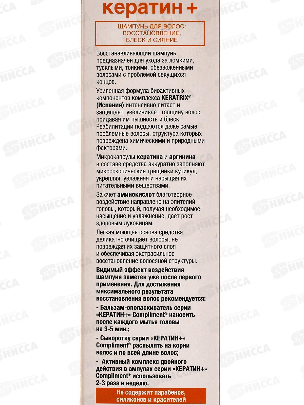 КОМПЛИМЕНТ "КЕРАТИН"+ шампунь для волос восстановление 200мл *15