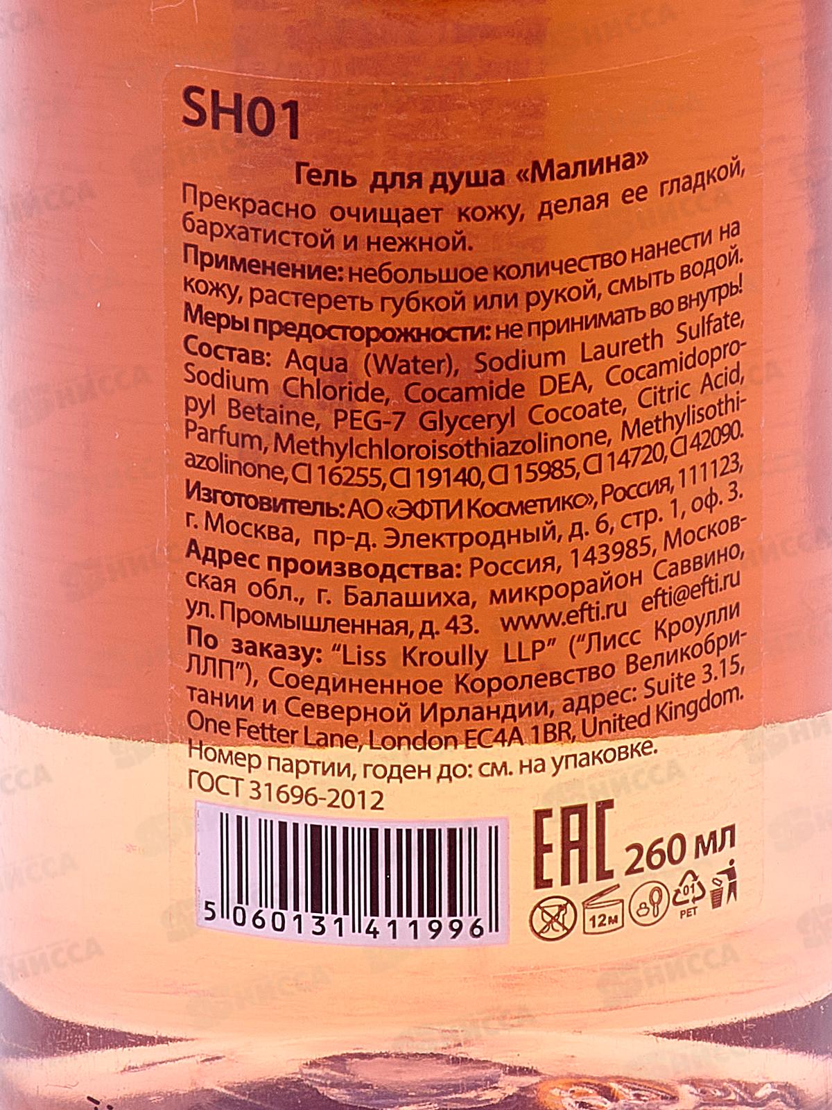 Состав: вода, лауретсульфат натрия, хлорид натрия, кокамид ДЭА, кокамидопропилбетаин, ПЭГ-7 глицерилкокоат, лимонная кислота, отдушка, метилхлоризотиазолинон, метилизотиазолинон, СI 16255, 19140, 15985, 14720, 42090.