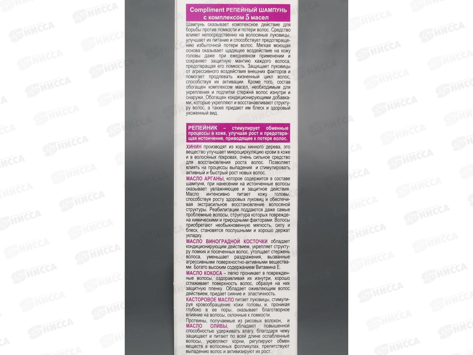 КОМПЛИМЕНТ шампунь для волос Репейный с комплексом 5масел 200мл *15