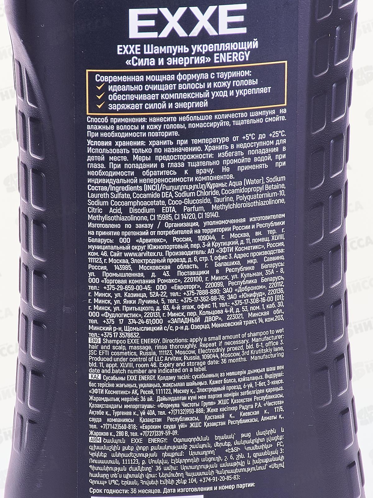 EXXE MEN Шампунь для волос Сила и энергия ENERGY 400мл *12 С0007974