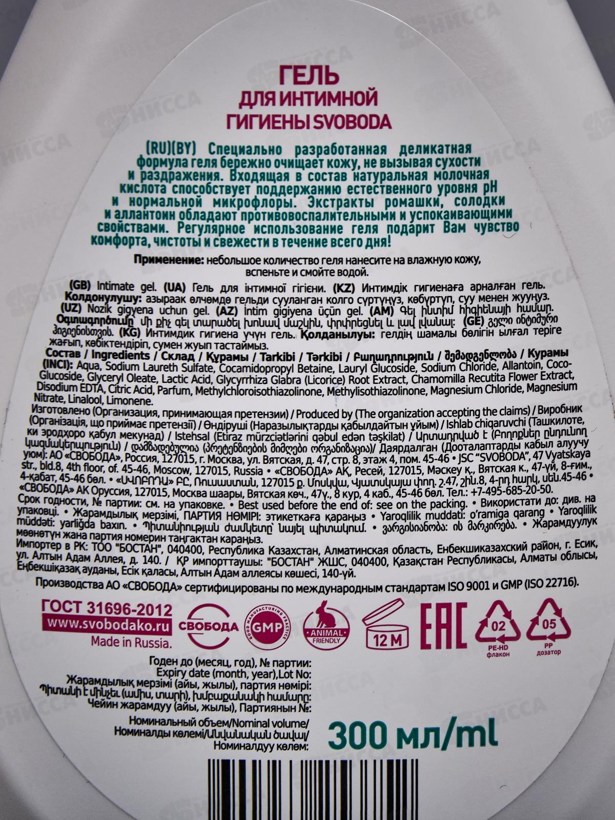 Свобода гель для интимной гигиены 300мл *14