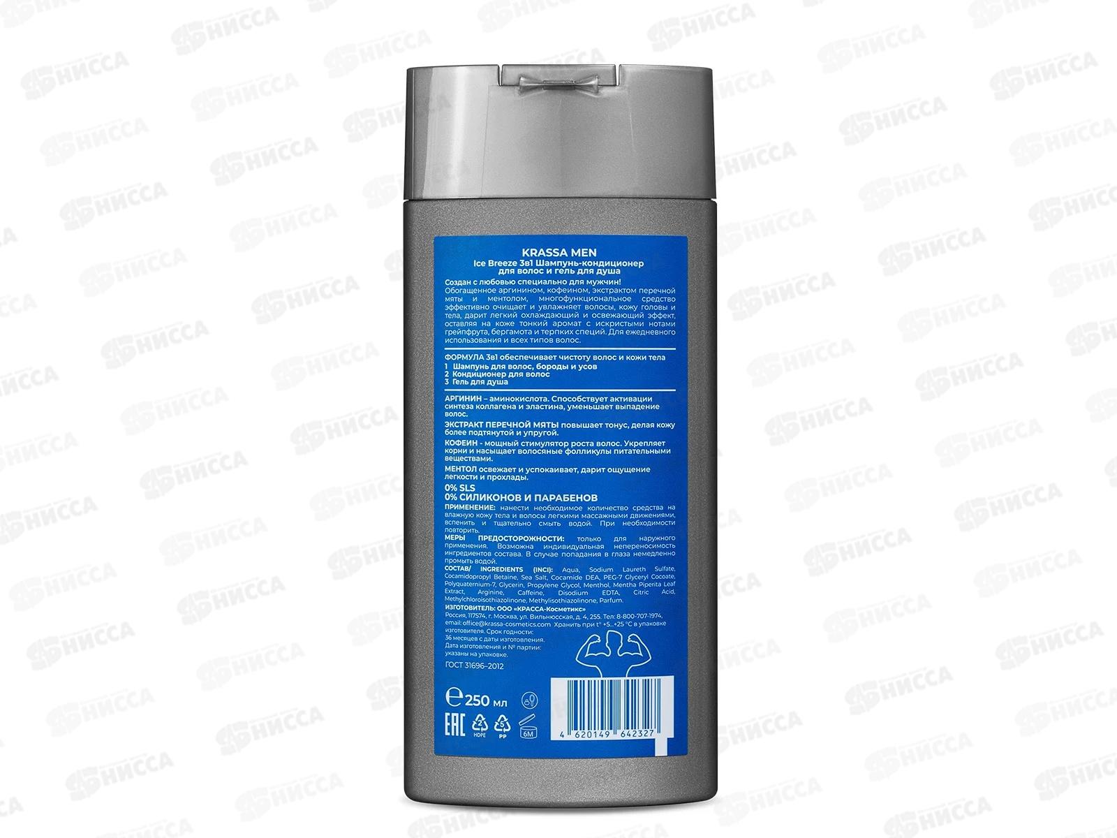 Krassa MEN Ice Breeze 3в1 Шампунь+гель+кондиционер 250мл *12