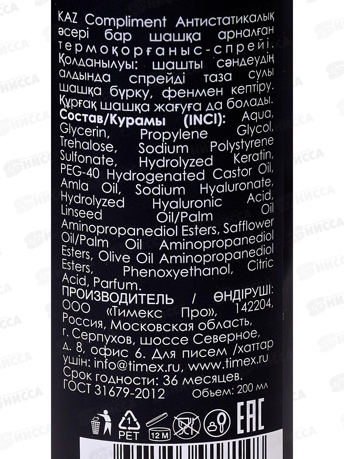 КОМПЛИМЕНТ Спрей-термозащита для волос с антистатик Гиалур заполнен 200мл *12