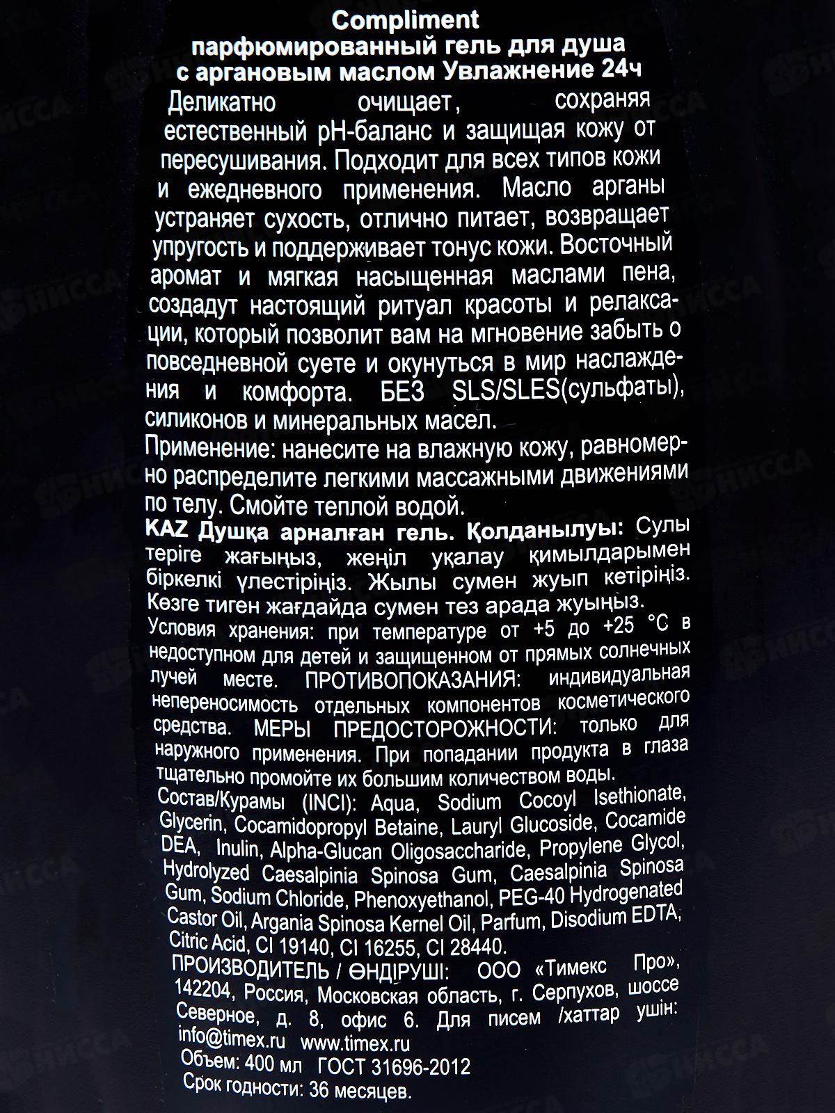 Compliment парфюмированный гель для душа с аргановым маслом Увлажнение 24ч 400мл *9