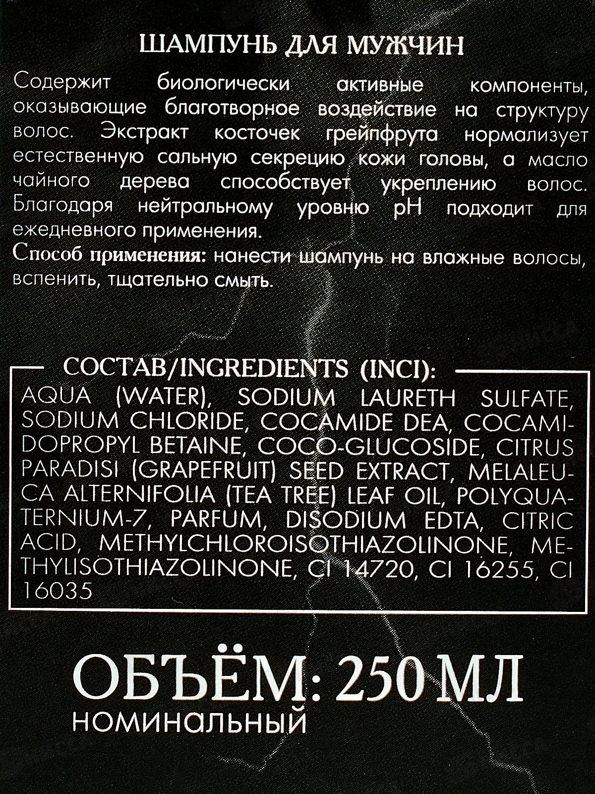 Состав шампуня: вода, лауретсульфат натрия, хлорид натрия, кокамидопропилбетаин, коко-глюкозид, экстракт семян грейпфрута, масло листьев чайного дерева, поликватерниум-7, отдушка, динатрий эдта, лимонная кислота, метилхлоризотиазолинон, метилизотиазолинон, CI 14720, СI 16035. Состав геля для душа: вода, лауретсульфат натрия, хлорид натрия, кокамидопропилбетаин, кокамид эдта, коко-глюкозид, экстракт семян грейпфрута, масло листьев чайного дерева, дистерат гликоля, отдушка, динатрий эдта, лимонная кислота, метилхлоризотиазолинон, метилизотиазолинон, CI 14720, CI 16255, СI 16035.