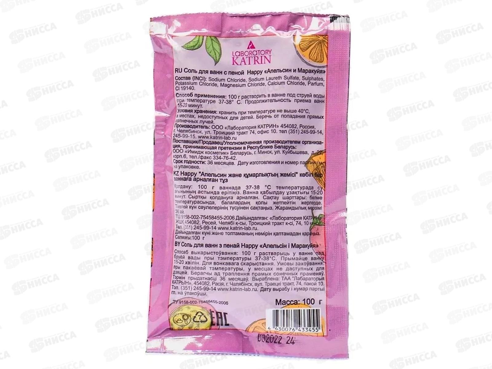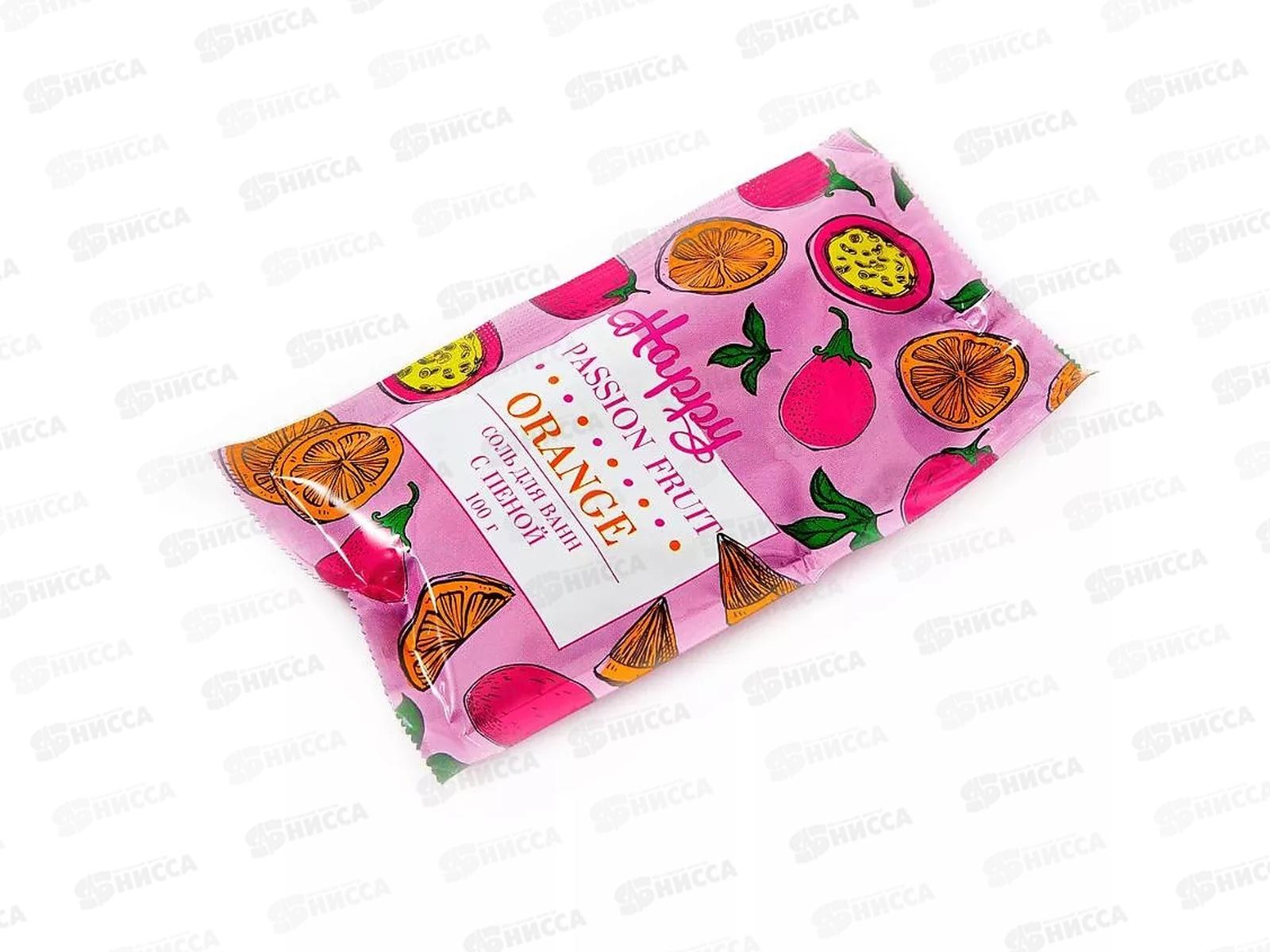 Соль для ванн 100г Happy с пеной Апельсин и маракуйя *24