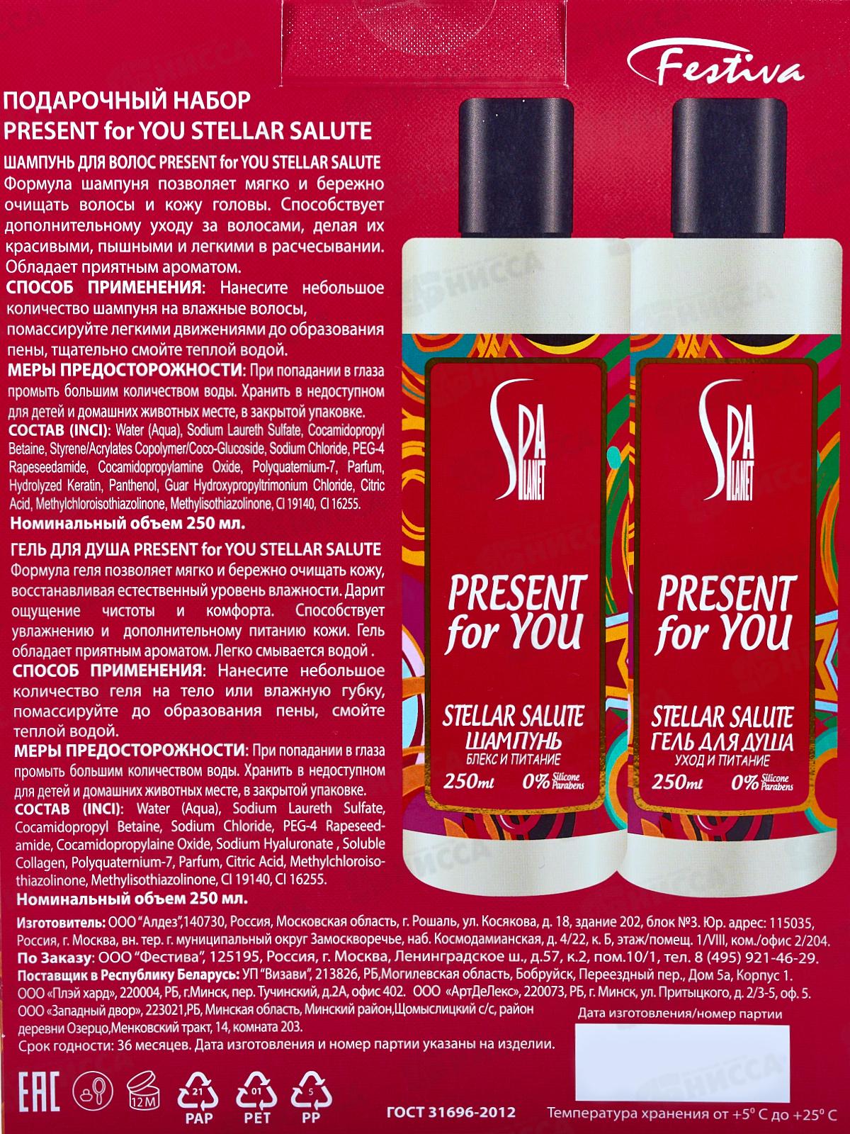 PRESENT for YOU Stellar Salute 585 подарочный набор (шампунь250мл+гель душ) муж *7