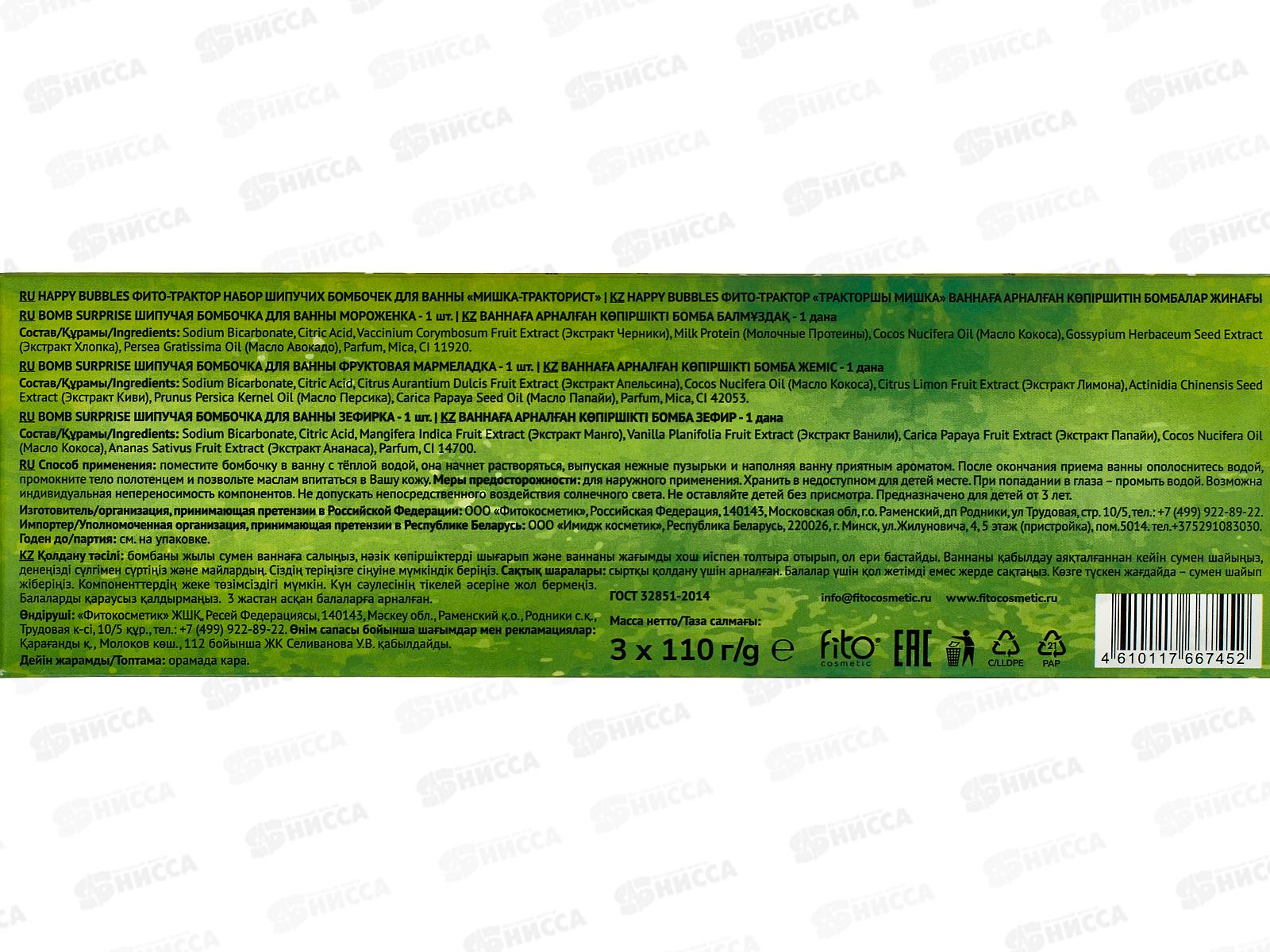 HAPPY BUBBLES Набор бомбочек для ванны "Мишка-тракторист" *12