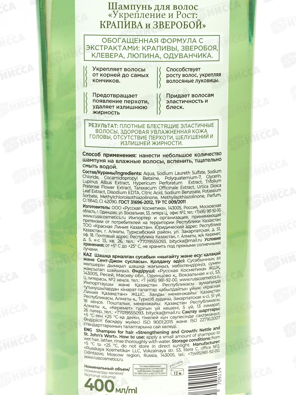 Состав: вода, лауретсульфат натрия, хлорид натрия, кокамидопропилбетаин, поликватерниум-7, глицерин, экстракт люпина белого, экстракт зверобоя продырявленного, экстракт цветков клевера лугового, экстракт одуванчика лекарственного, экстракт листьев крапивы двудомной, динатриевая соль ЭДТА, лимонная кислота, бензоат натрия, сорбат калия, метилхлоризотиазолинон, метилизотиазолинон, парфюмерная композиция, СI 19140, СI 42090.