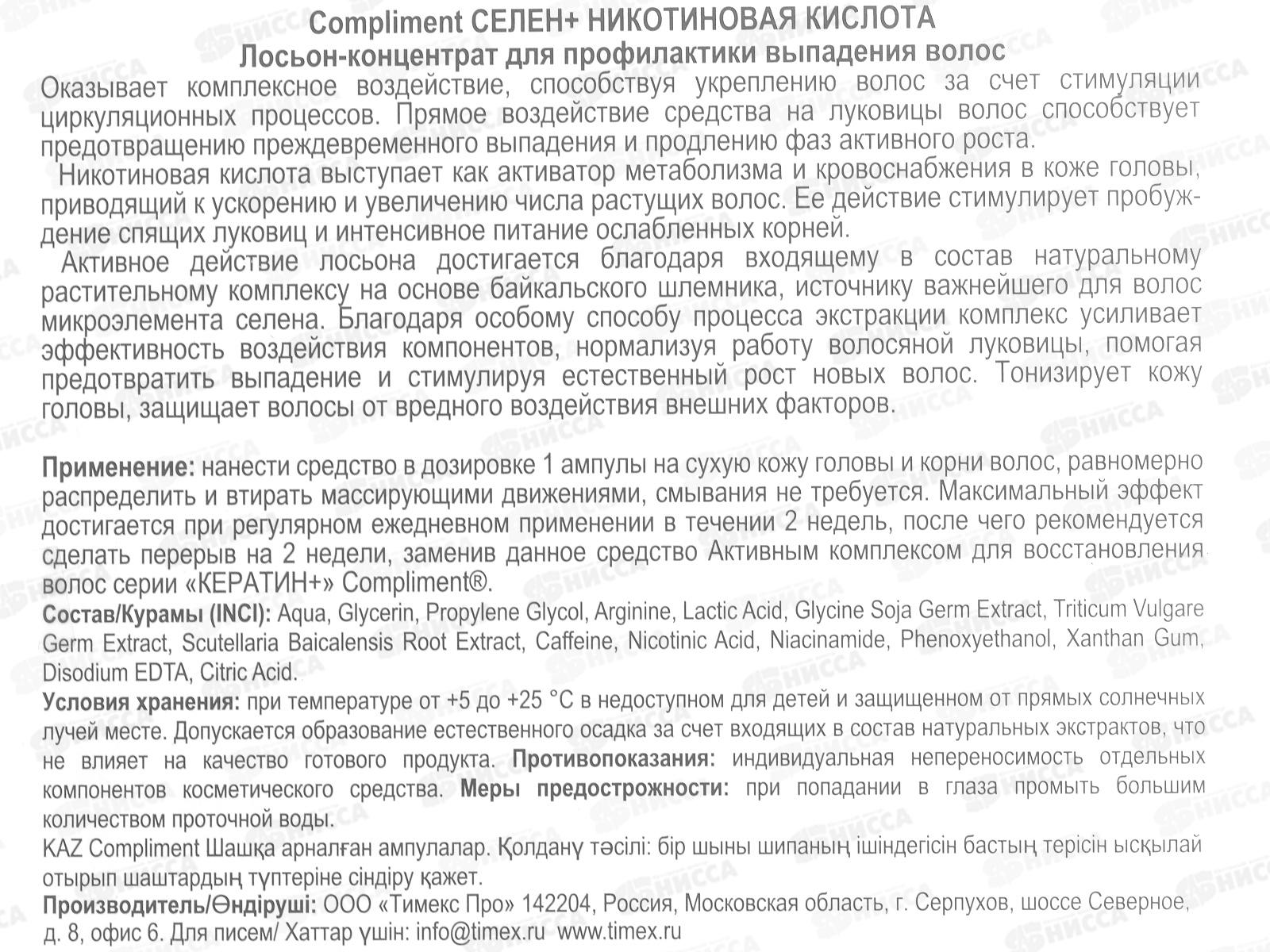 КОМПЛИМЕНТ "СЕЛЕН"+ никотин кислот Лосьон конц для проф вып вол 7*10мл