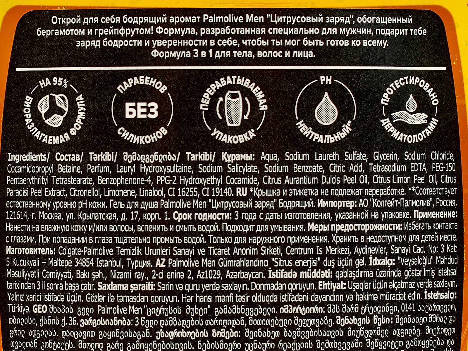 ПАЛМОЛИВ душ-гель 250мл 2в1 для мужчин Цитрусовый заряд *12