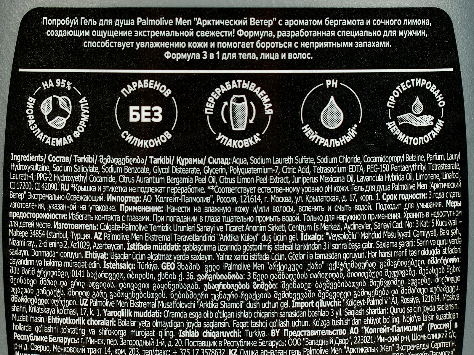 ПАЛМОЛИВ душ-гель 250мл 2в1 для мужчин Арктический ветер *12