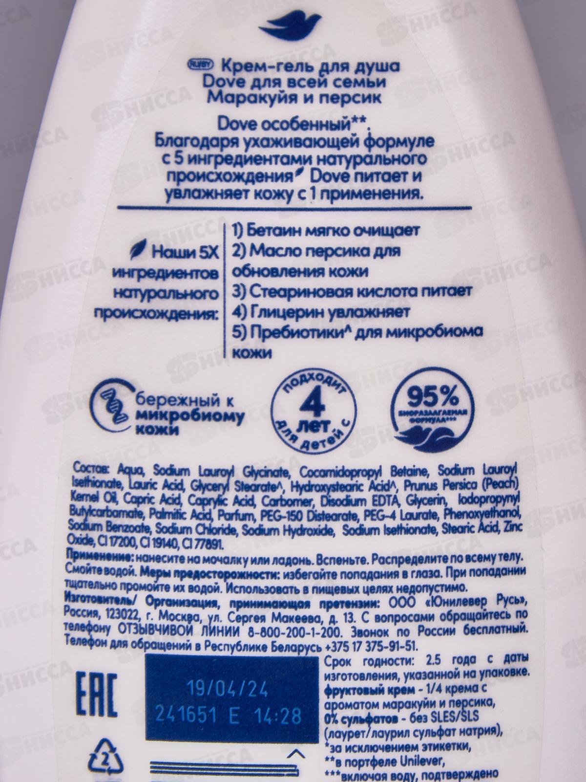 ДАВ крем-гель для душа 250мл Маракуя Персик *12