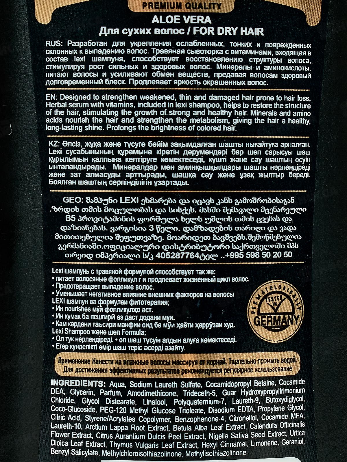 Royal Lexi Premium Шампунь для сухих волос Алоэ Вера 250мл *30