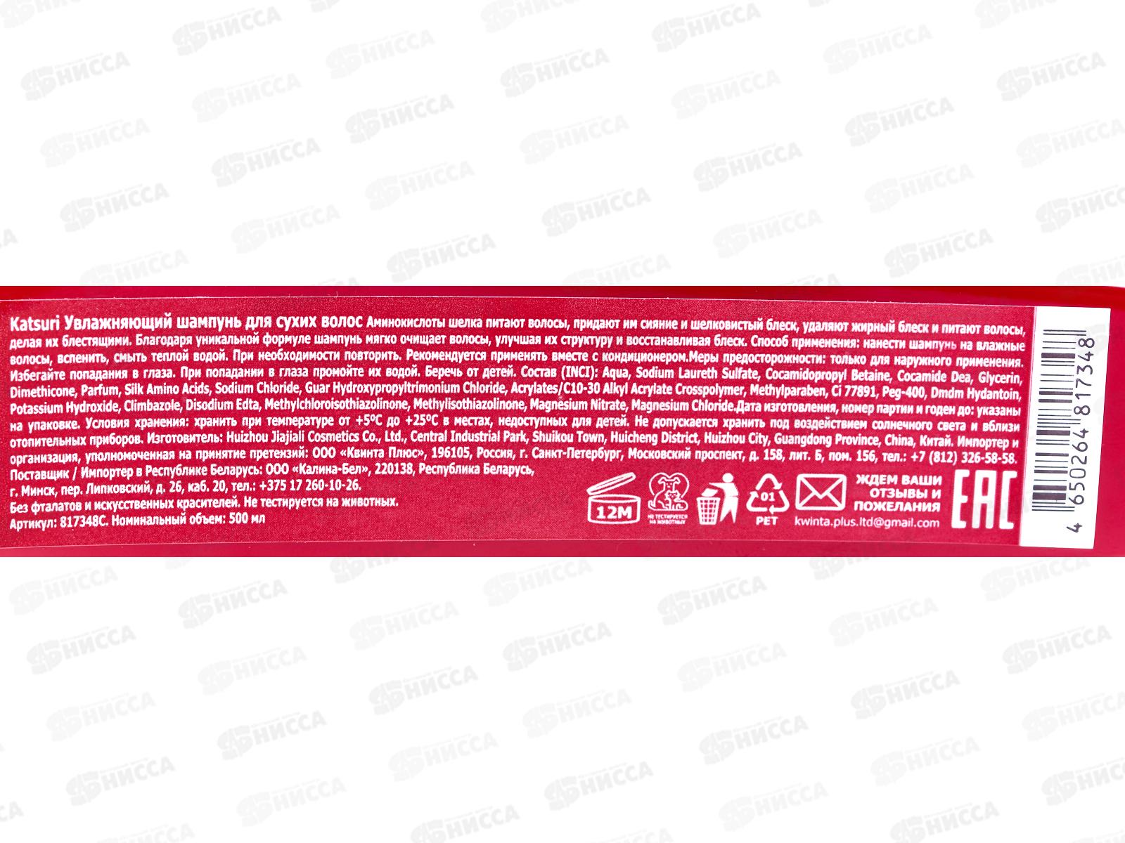 Katsuri шампунь для волос Увлажняющий для сухих волос 500мл