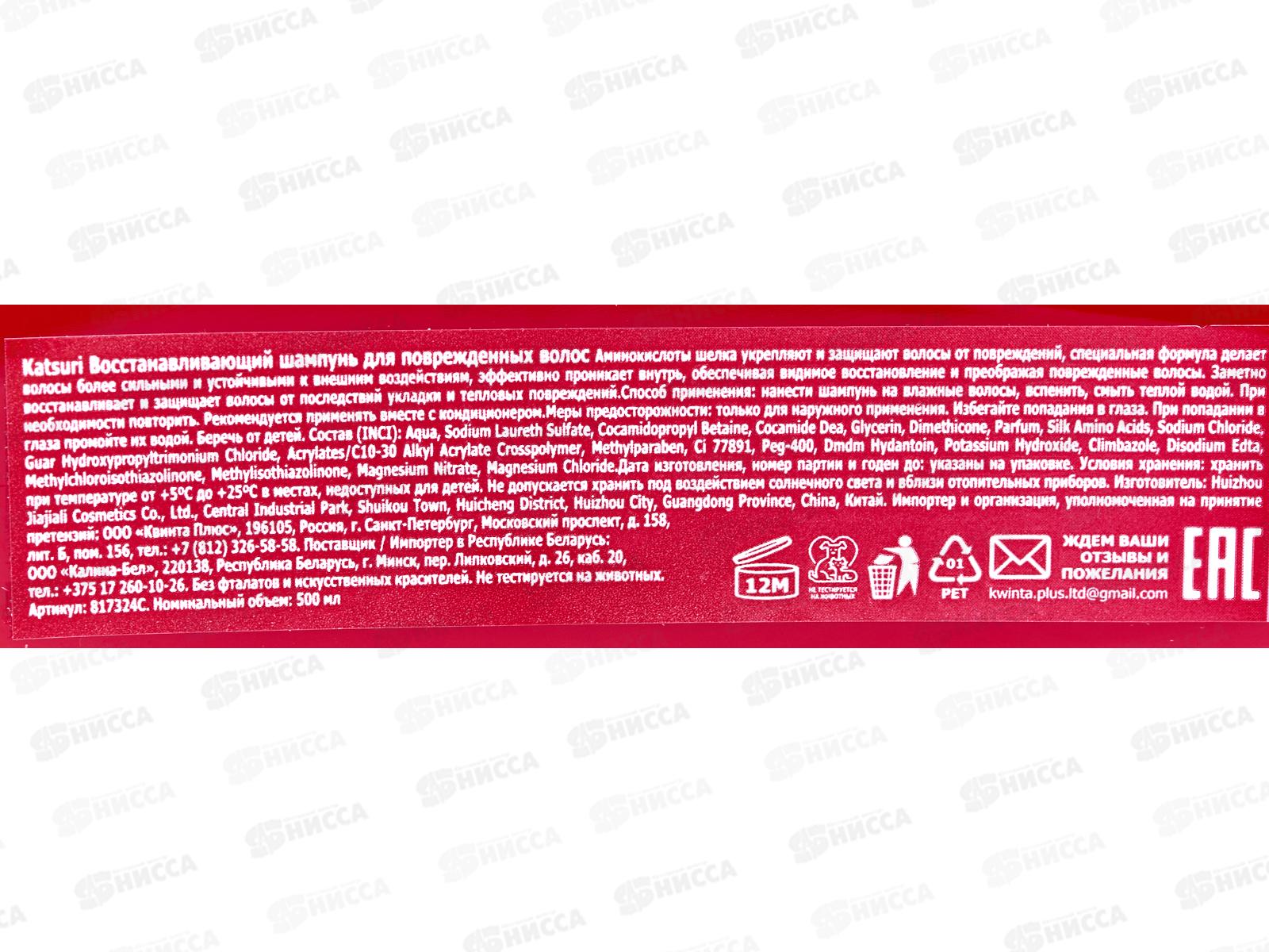 Katsuri шампунь для волос Восстан для поврежден волос 500мл