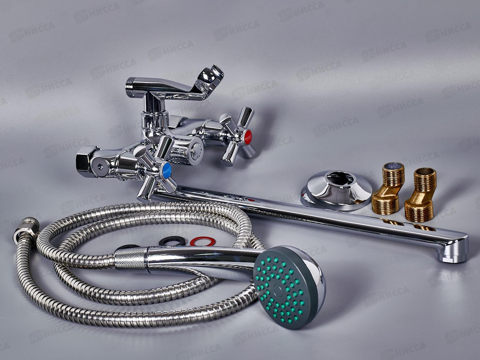 Комплектация: смеситель для ванны, эксцентрики с отражателями, лейка, шланг, держатель