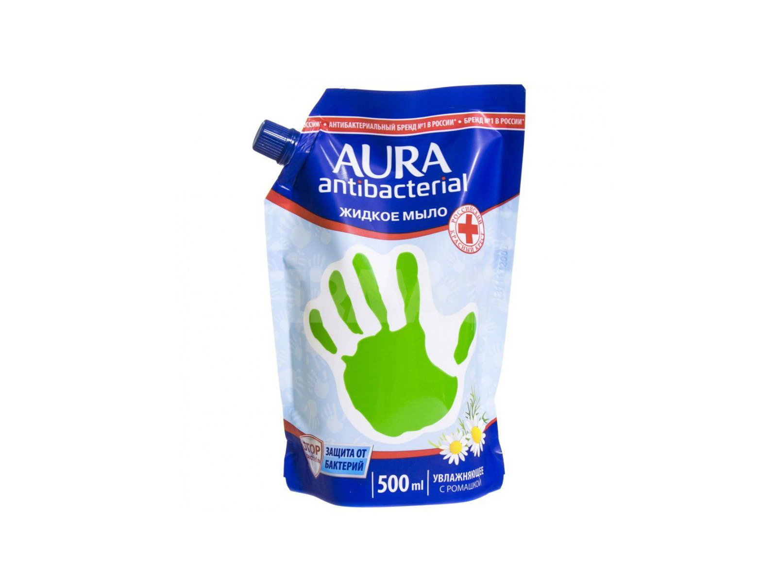 АУРА мыло жидкое 500мл антибактериальное Ромашка дой-пак *12