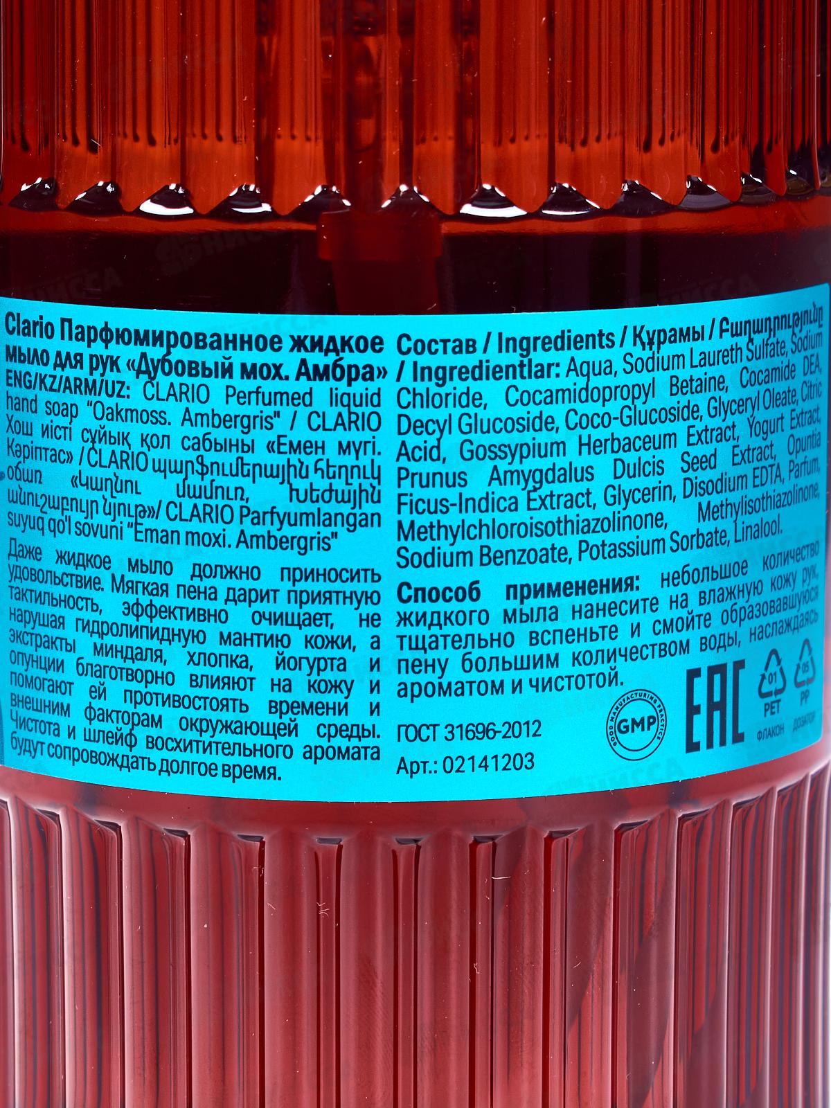 Clario Парфюмированное жидкое мыло для рук Дубовый мох Амбра 500мл *6