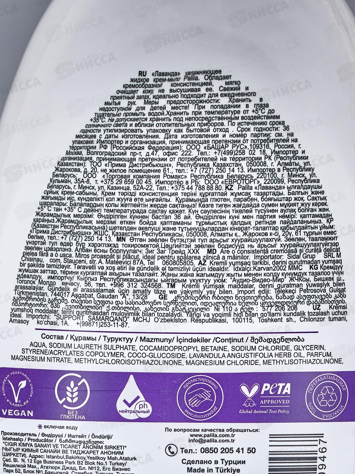 Palila Увлажняющее крем-мыло 500мл Лаванда *12