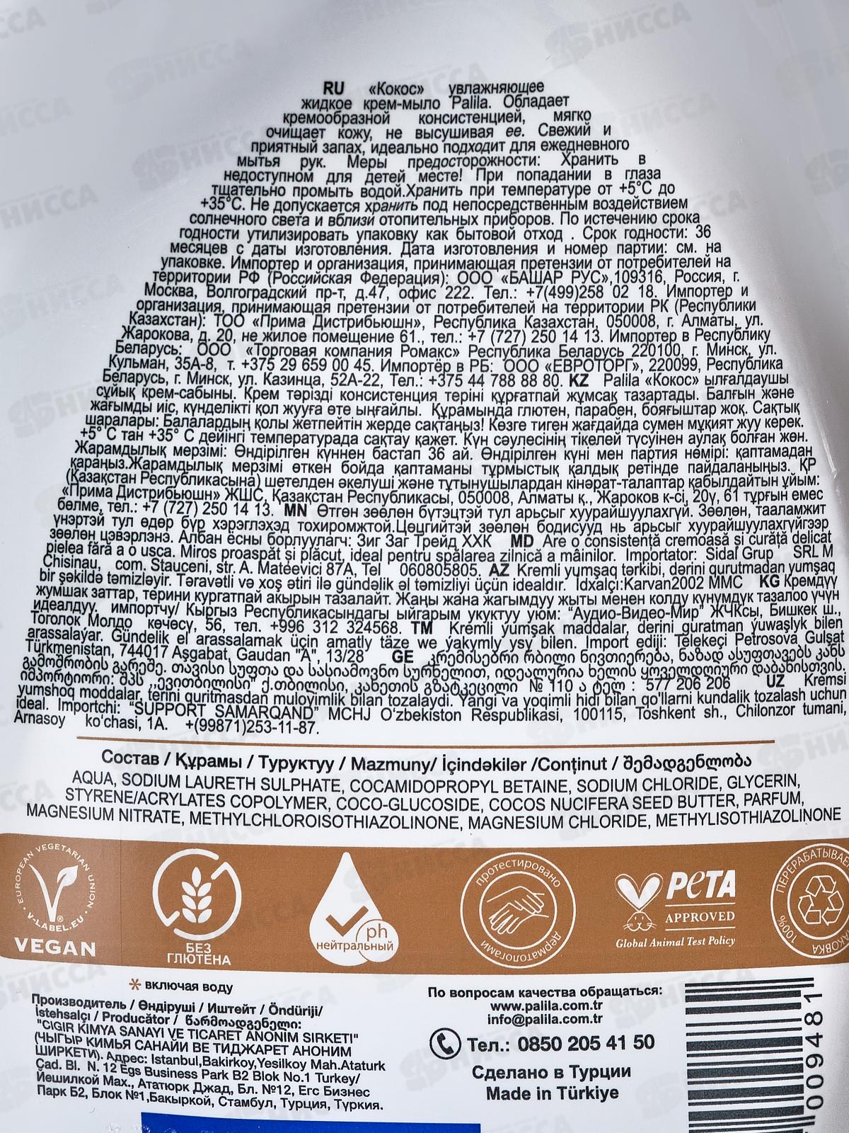 Palila Увлажняющее крем-мыло 500мл Кокос *12